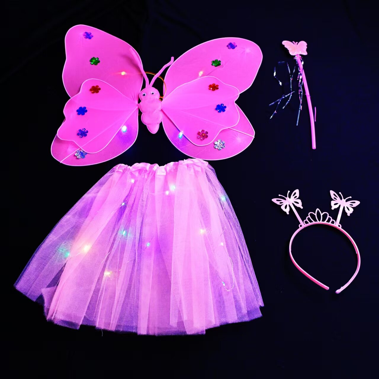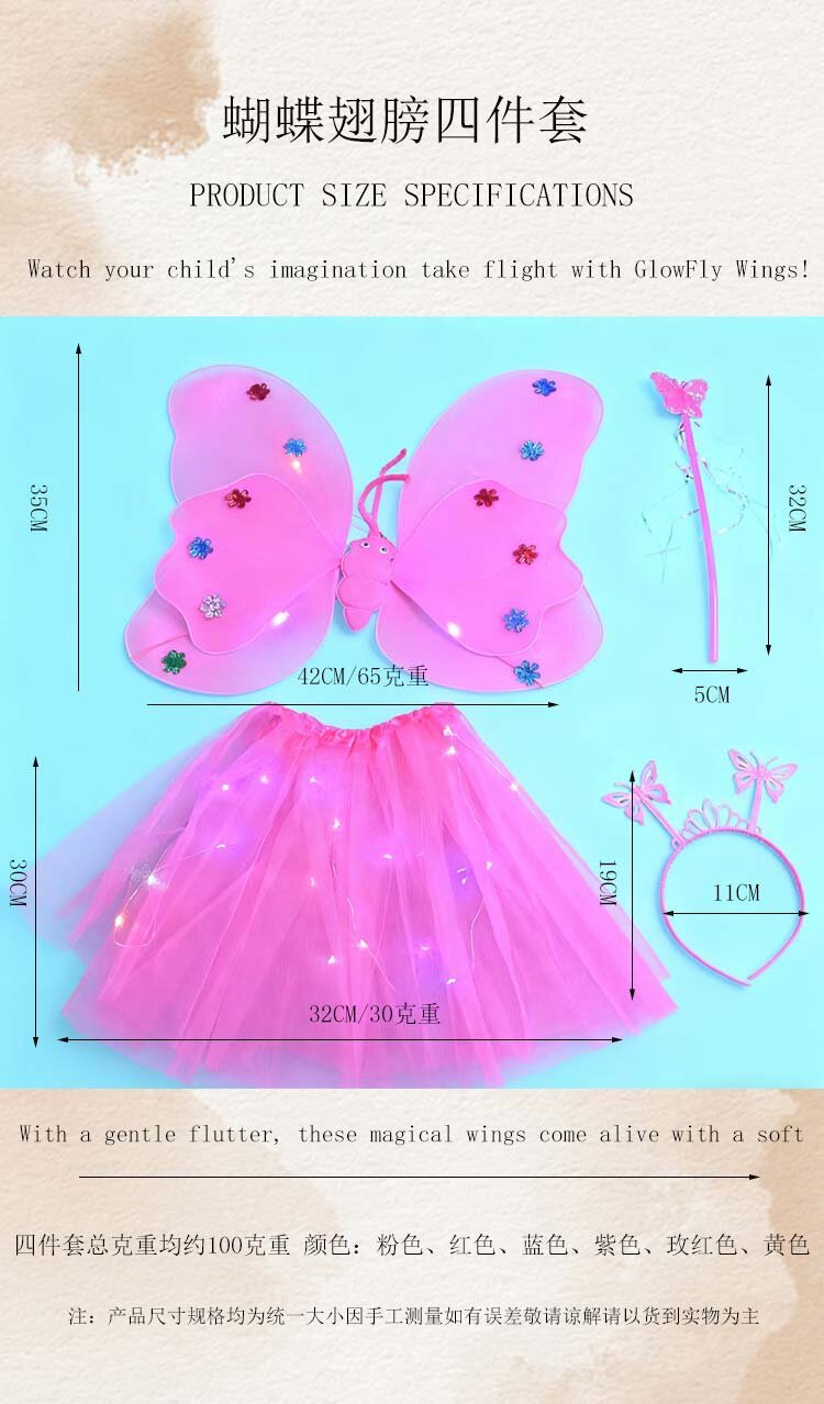 double-layer light wings and skirt 4-piece set pink