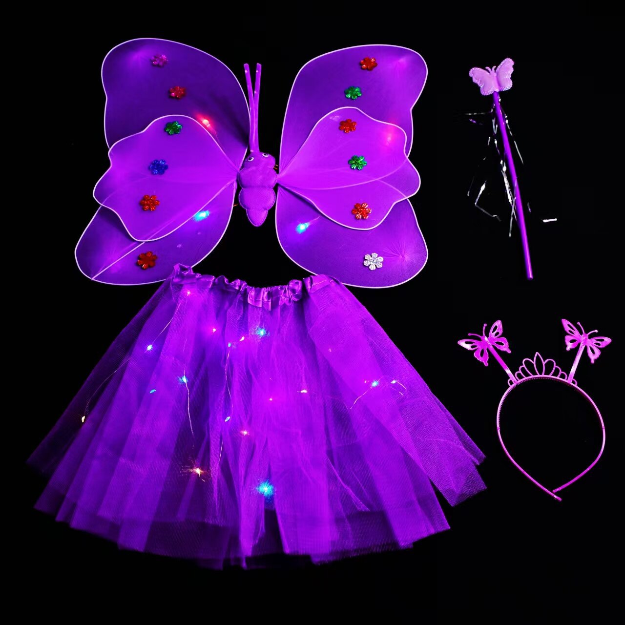 4-piece set of double-layer light wings and skirt purple