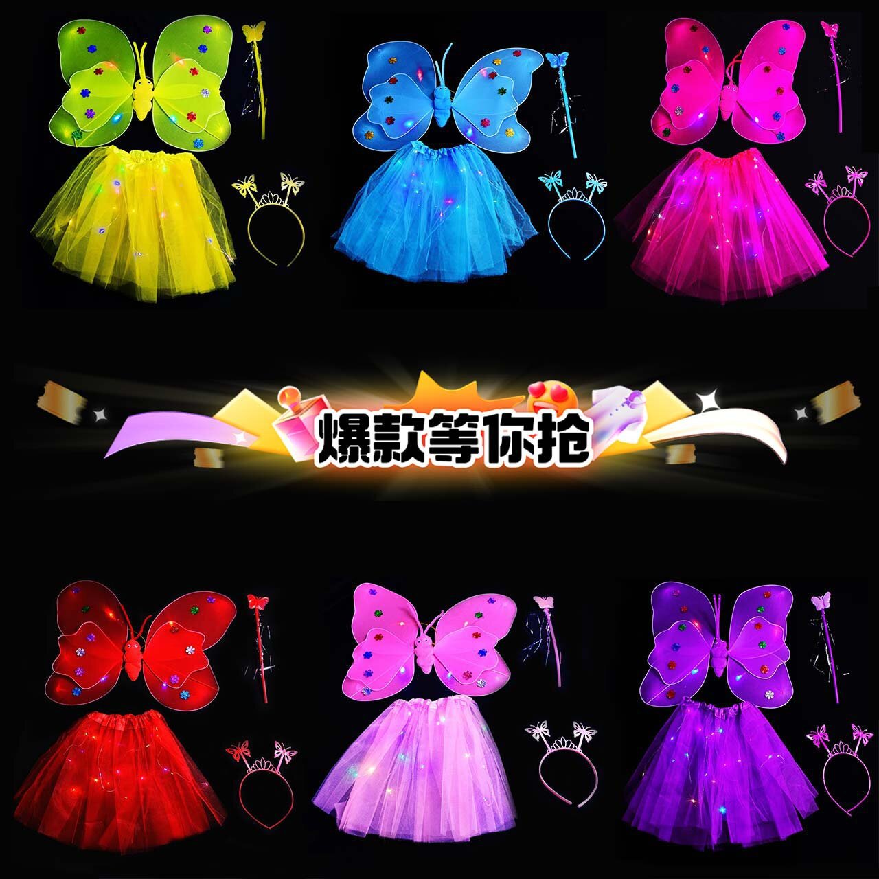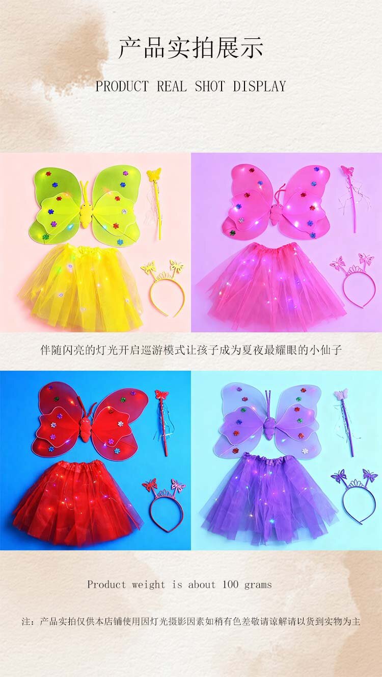 double-layer light wings and skirt 4-piece set mixed color