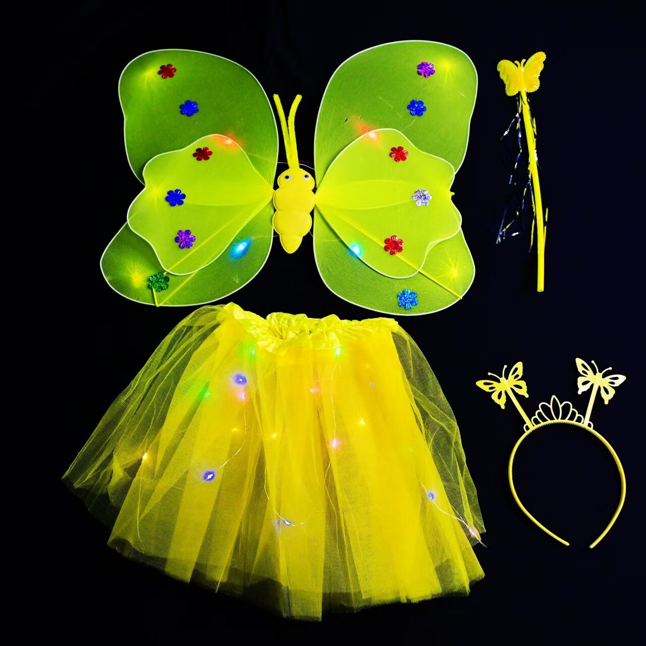 double-layer light wings and skirt 4-piece set yellow