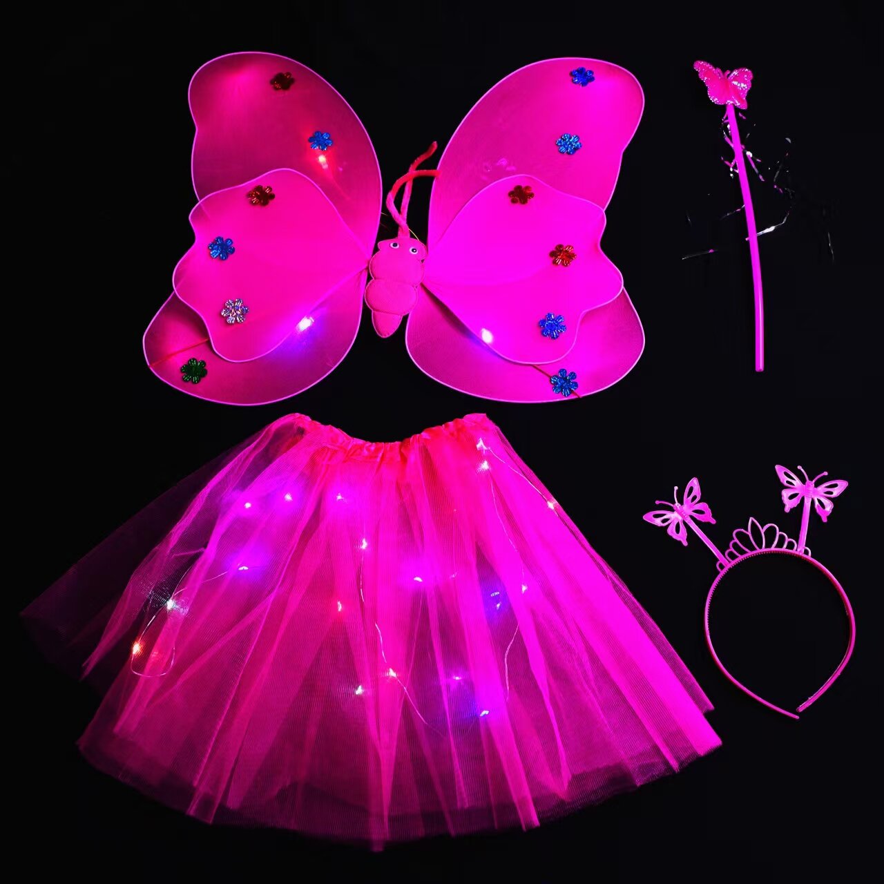 4-piece set of double-layer lamp wings and skirt rose red