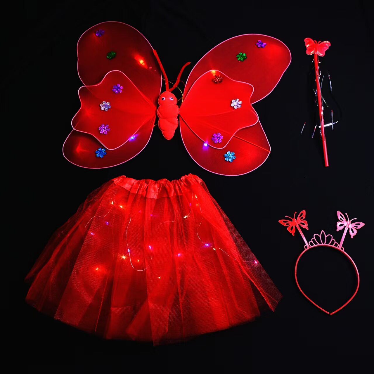 double-layer light wings and skirt 4-piece set red