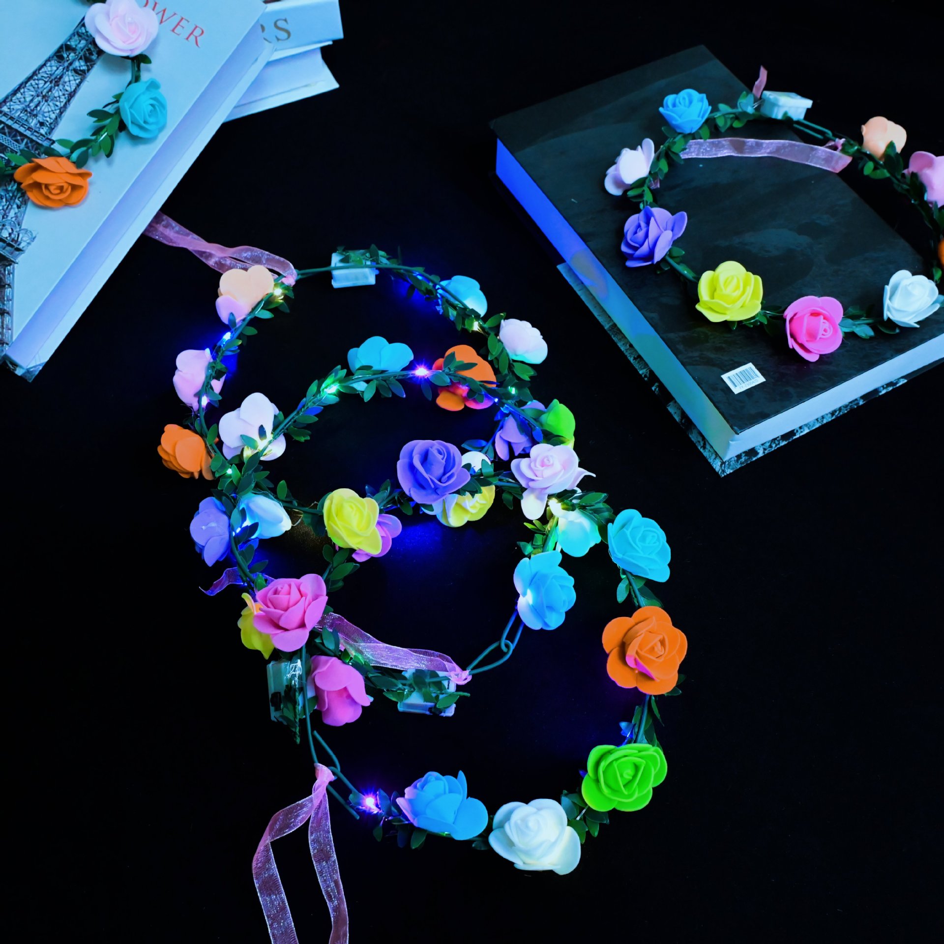 leaves, big flowers, colorful rings