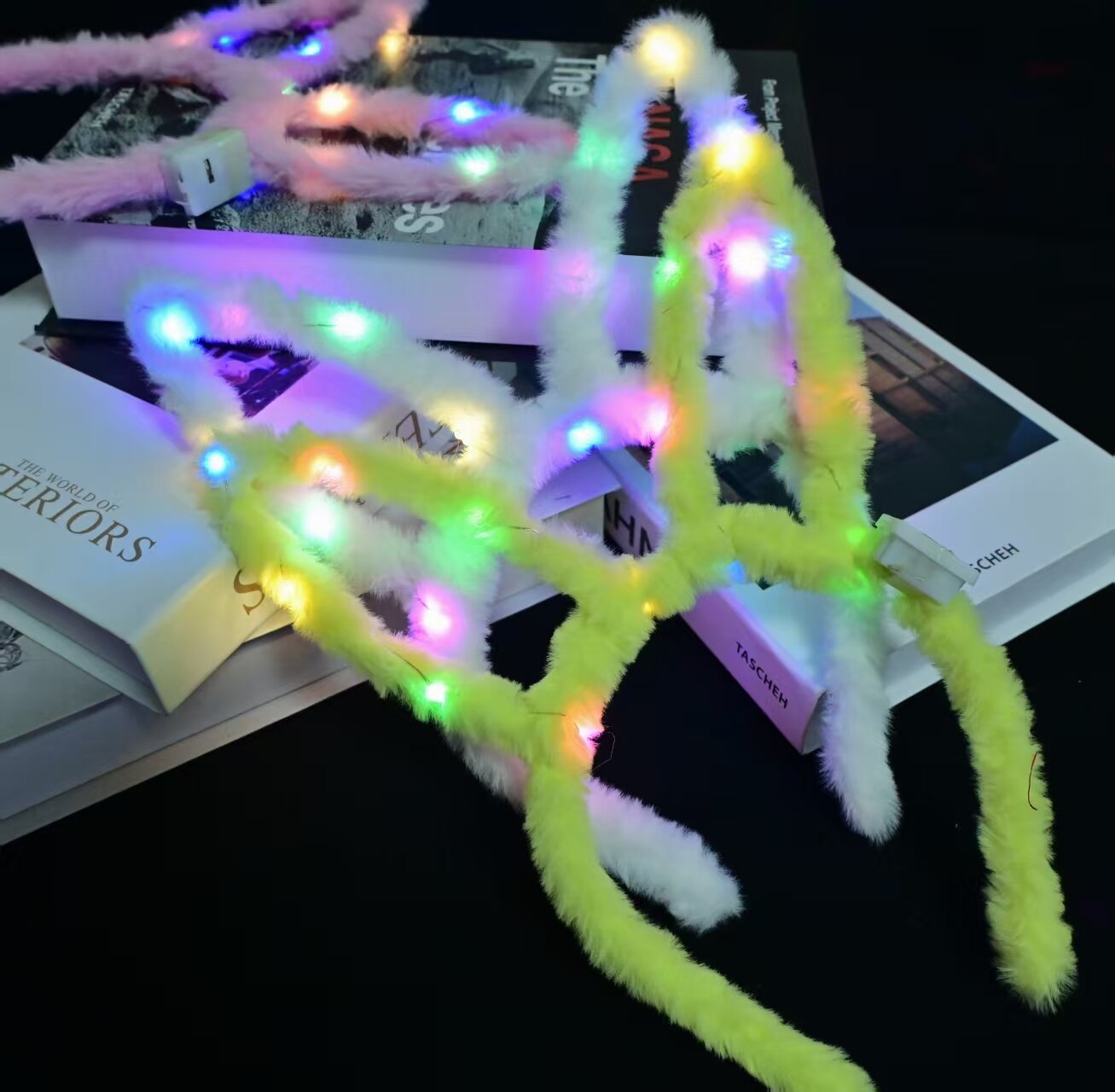 14 lights full fur rabbit ears rose red colored lights