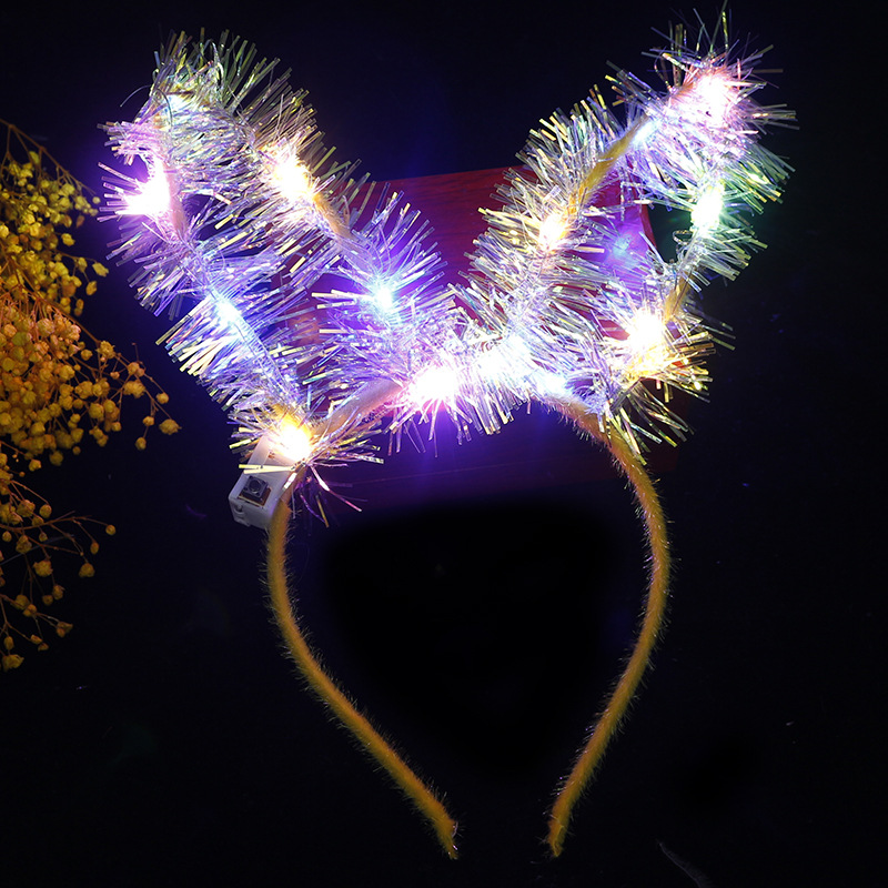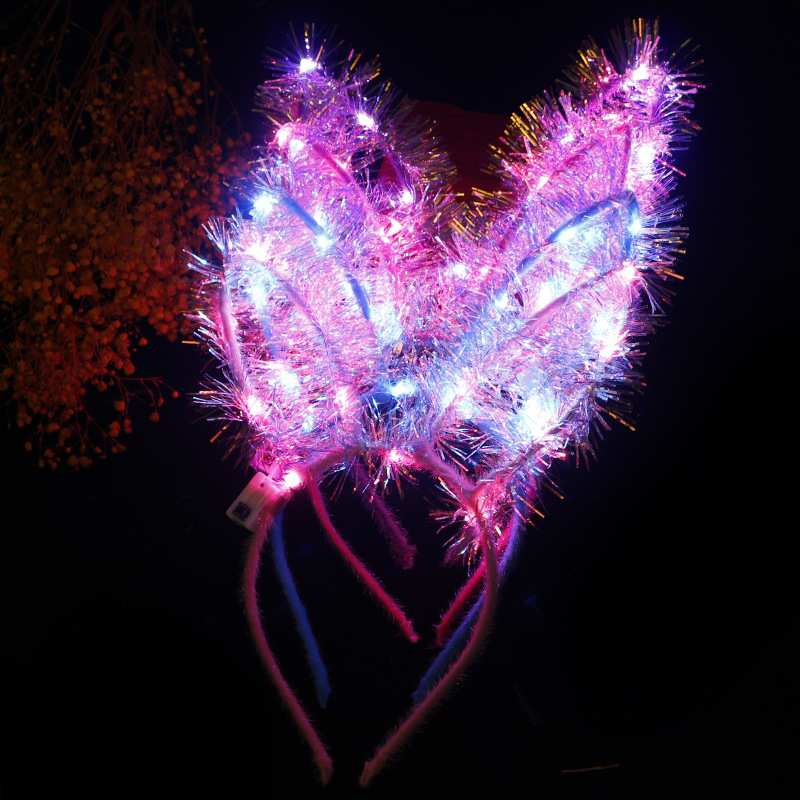 hot-selling lengthened 14 lights gold silk luminous rabbit ears hair hoop scenic spot stall hot-selling supply bright gold silk rabbit ears
