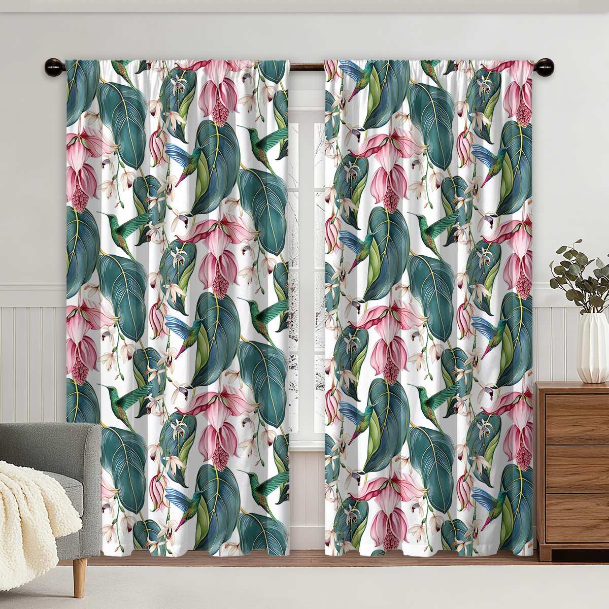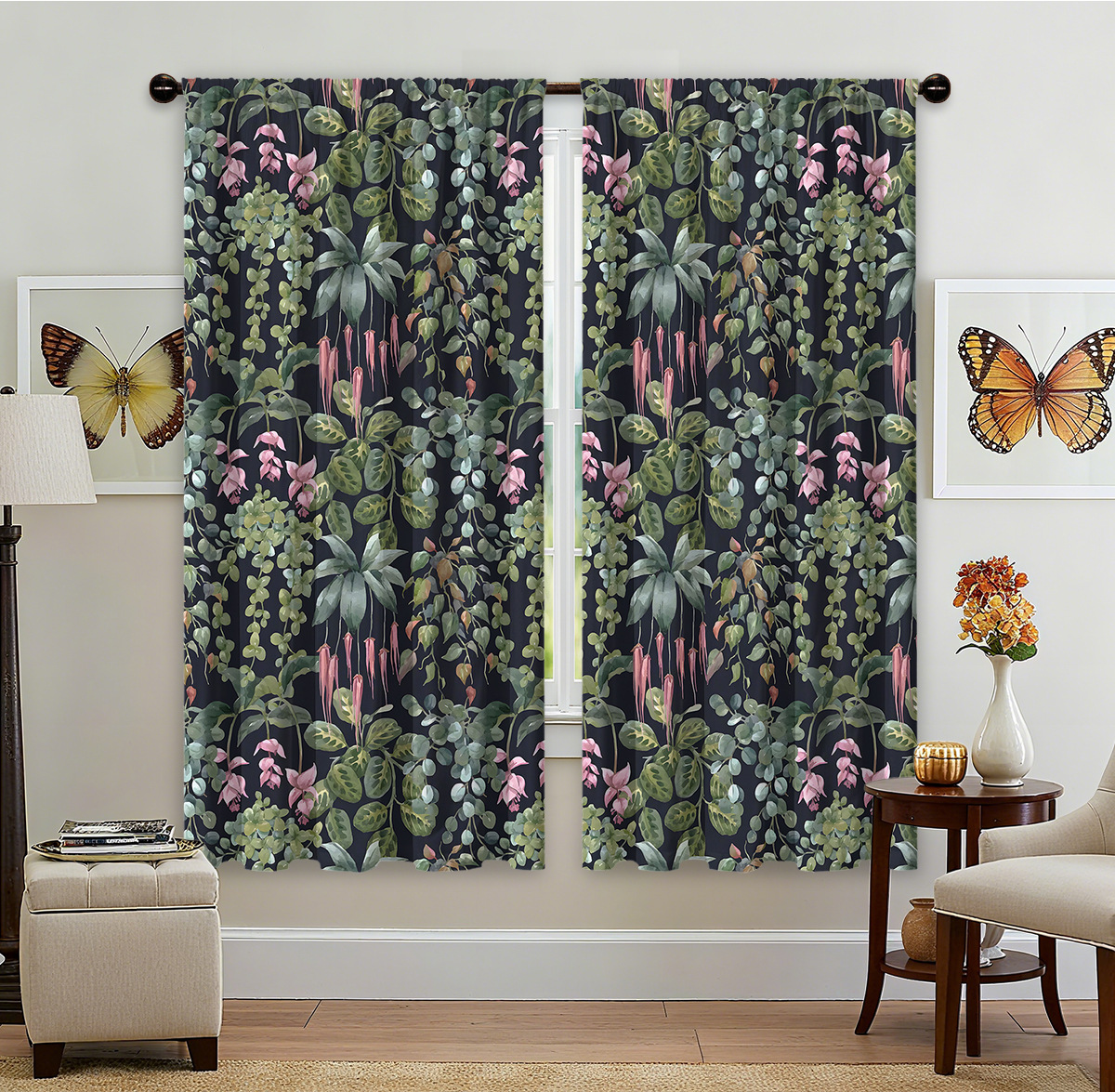 christmas floral curtain factory generation 3d digital printing cross-border amazon curtain hot sale pattern