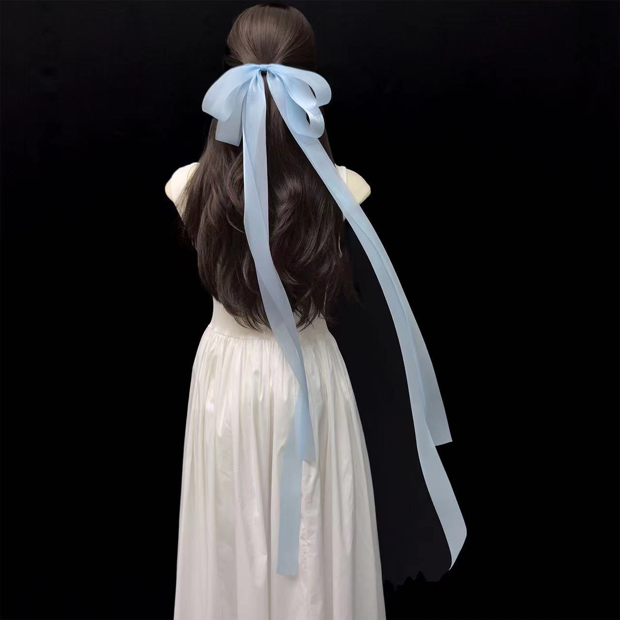 4582 tulle extra long bow blue