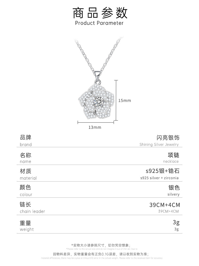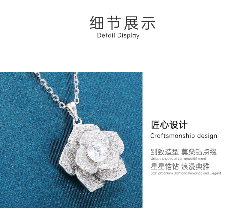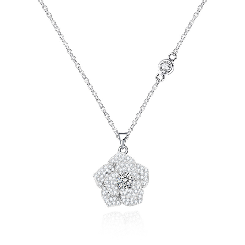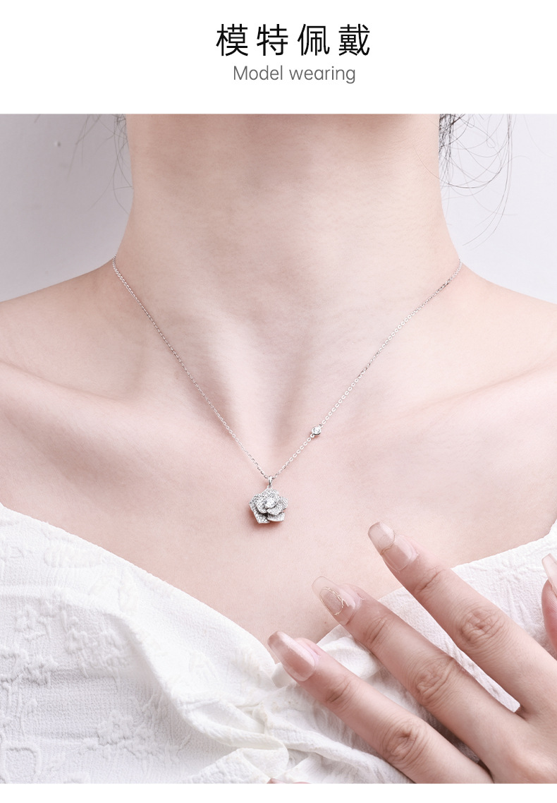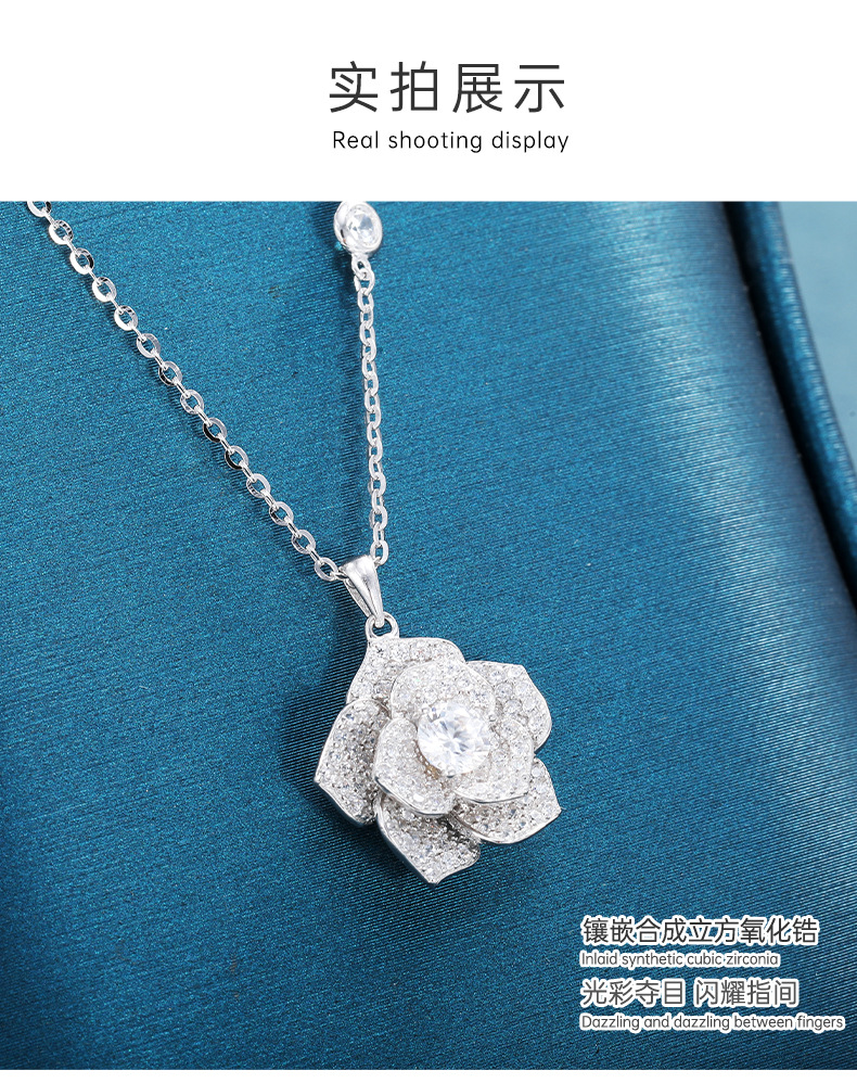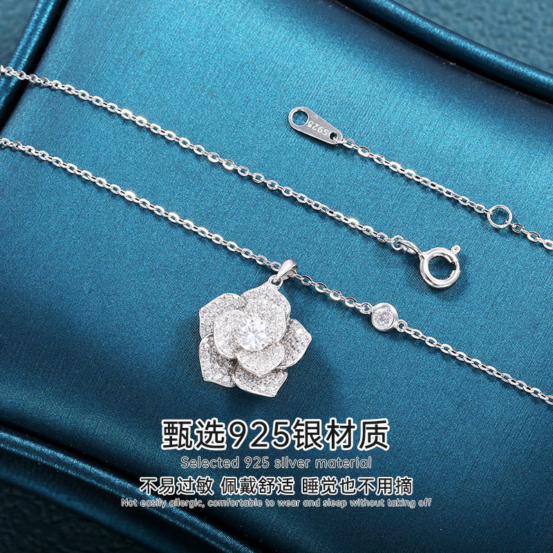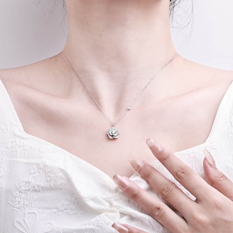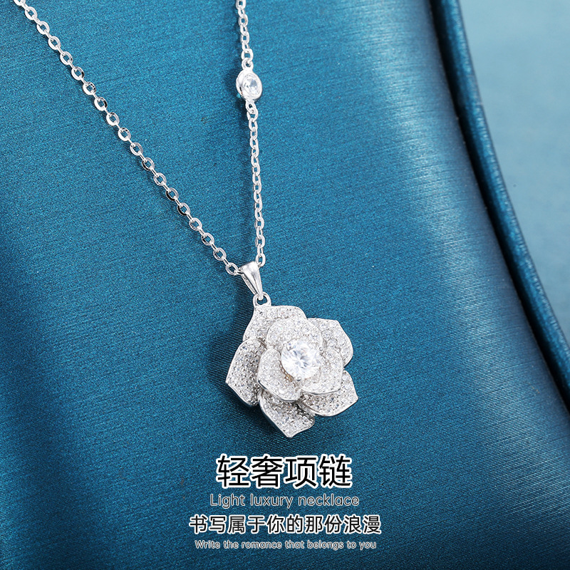 new bojia rose necklace female silver platinum plated inlaid with zirconium starry sky camellia flower clavicle chain jewelry