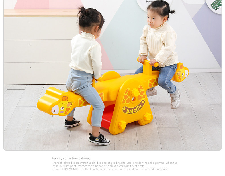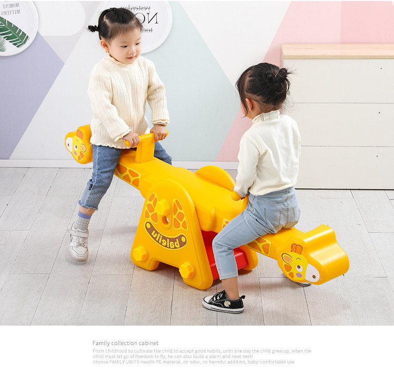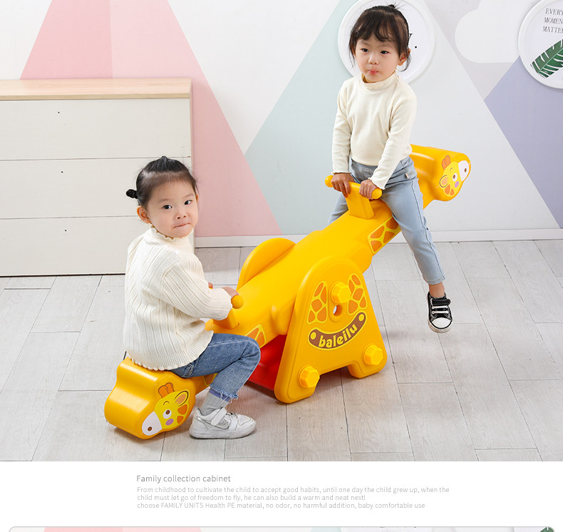 yellow giraffe seesaw