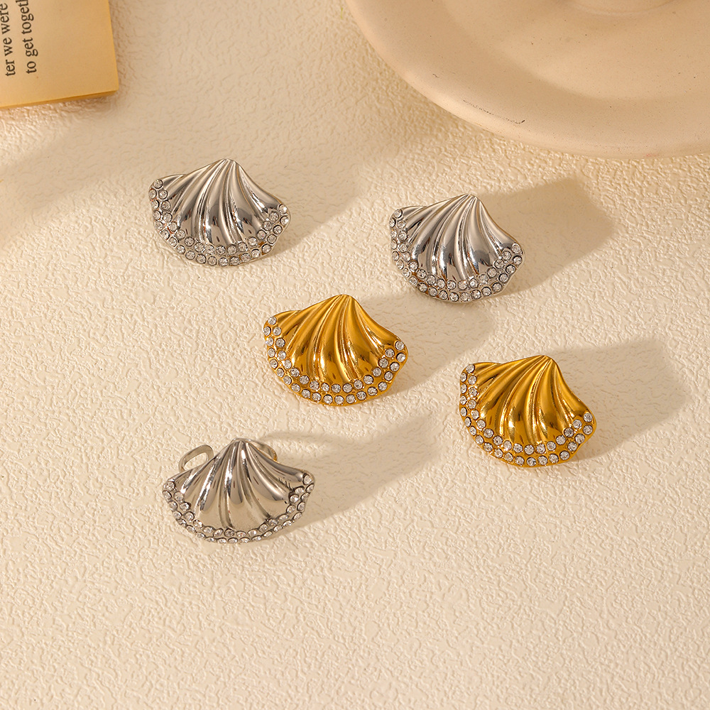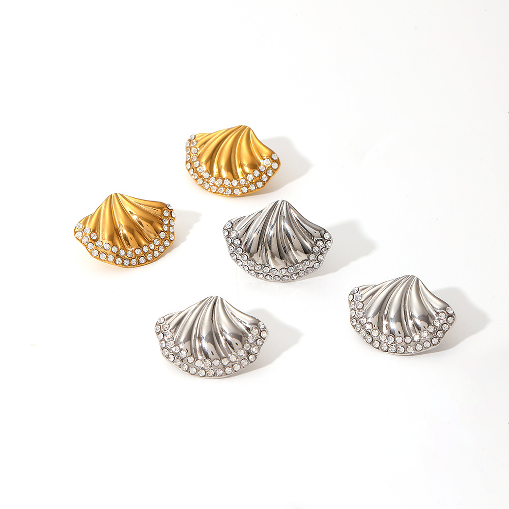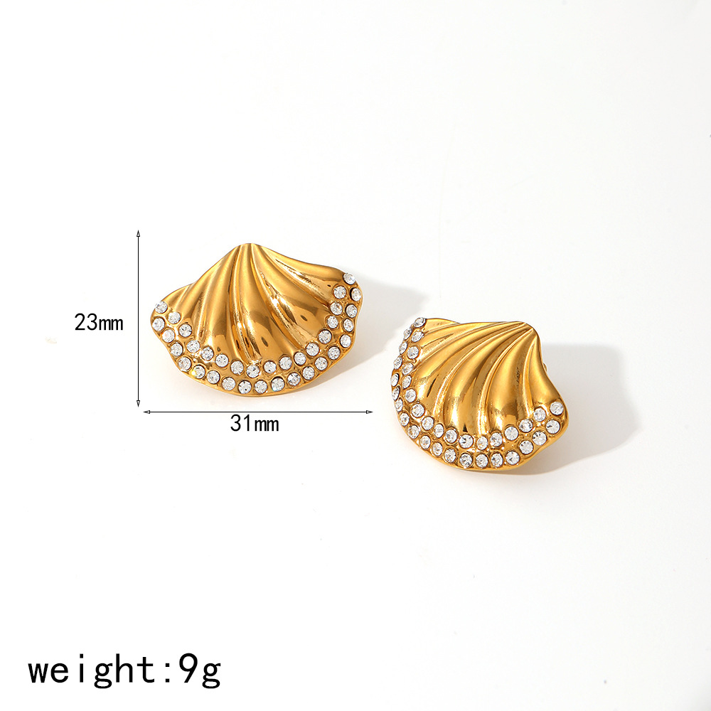 不锈钢 款 耳饰 耳钉 设计 欧美 18K金 复古 贝壳 耳环 女 小众 钛钢 跨境 个性 镀 ins 新款 时尚 几何 海洋 高级 水钻 夏季 轻奢 系列