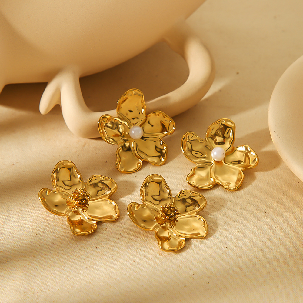 花朵 合金 耳环 耳饰 女 跨境 耳钉 欧美 珍珠花 金属 气质 镶珍珠 小香风 花卉 轻奢 个性 批发 外套 时尚 朵状 精致 耳坠