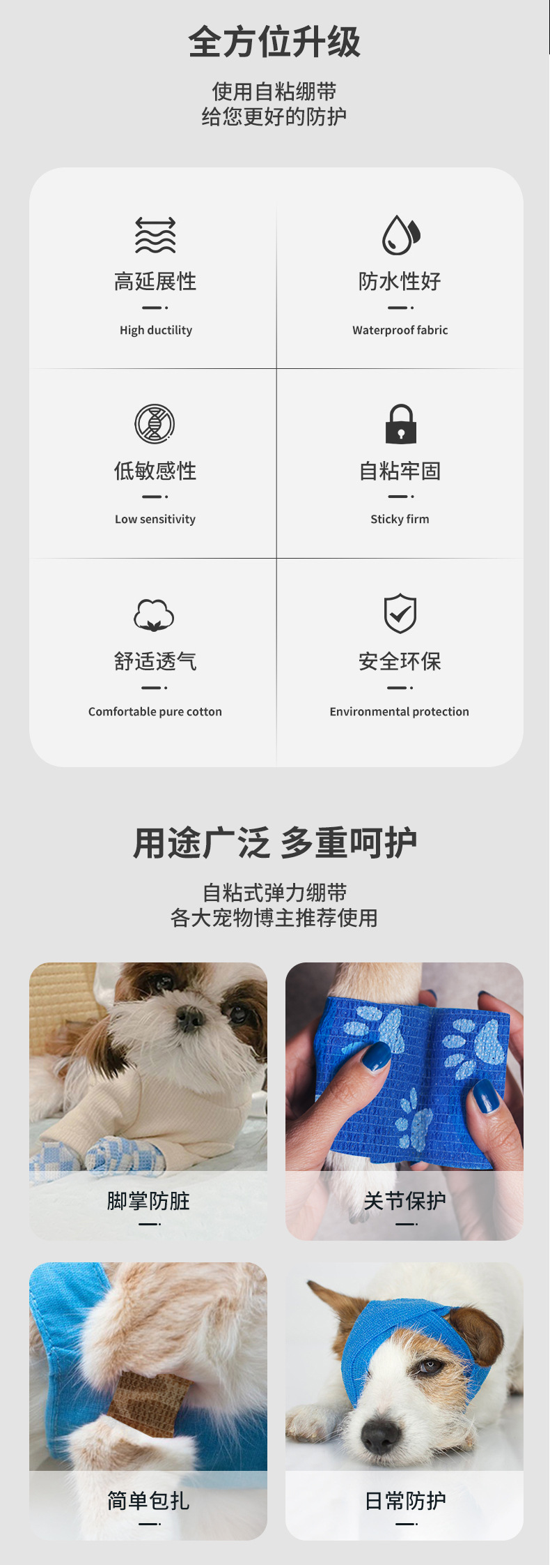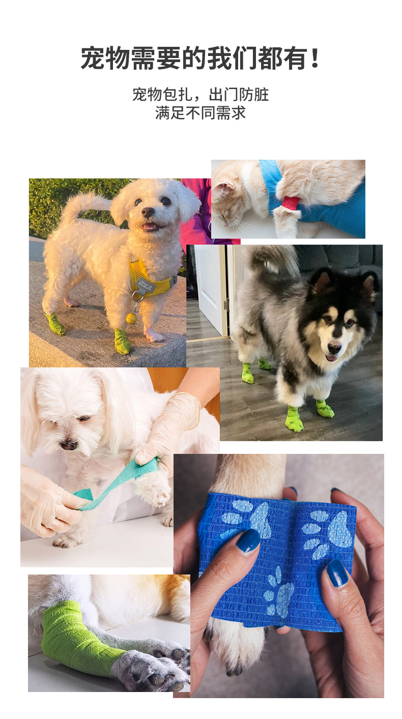 universal printing paw print non-woven self-adhesive outdoor pet bandage anti-dirty artifact animal protection bandage for cross-border