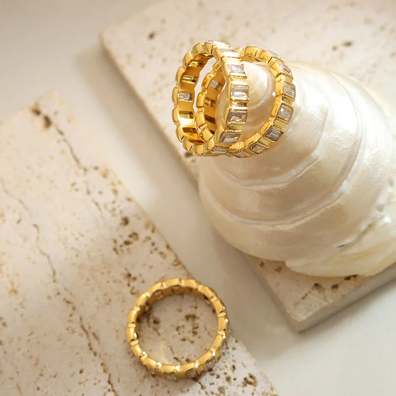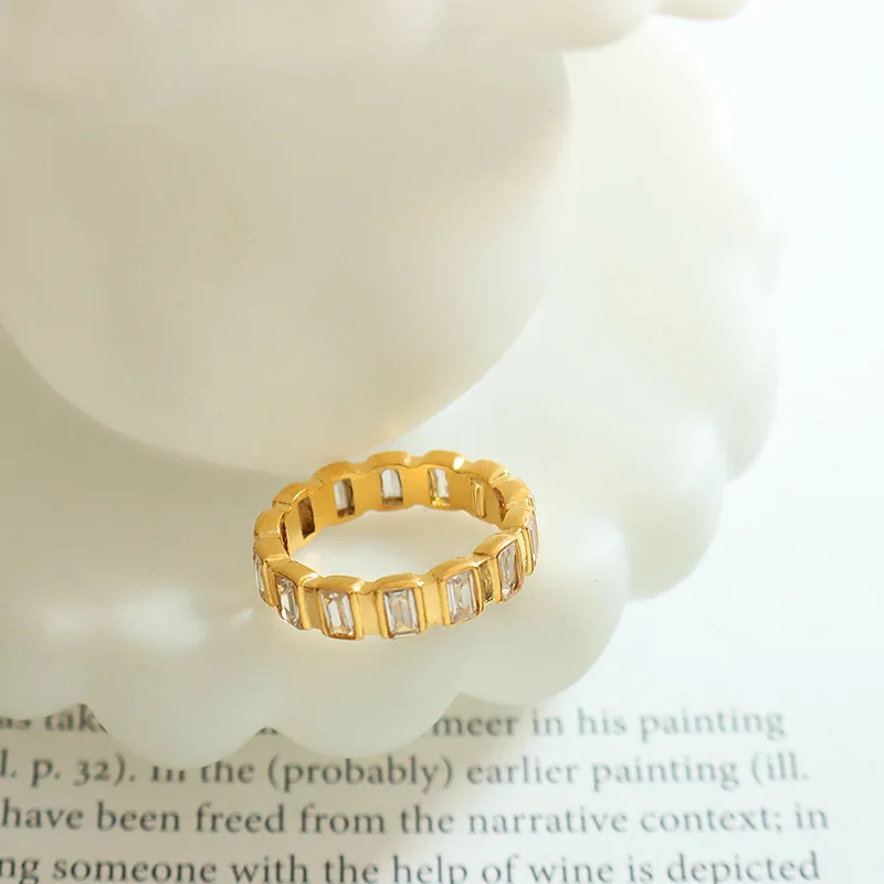 Ouj Personality Competitive Price Trendy Full Cubic Zirconia Gold Plated 316L Stainless Steel Finger Rings for Women Jewelry