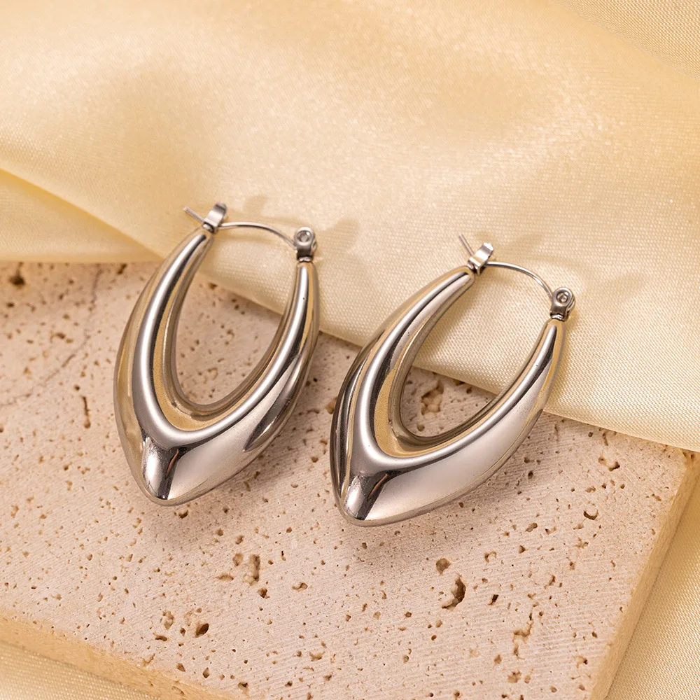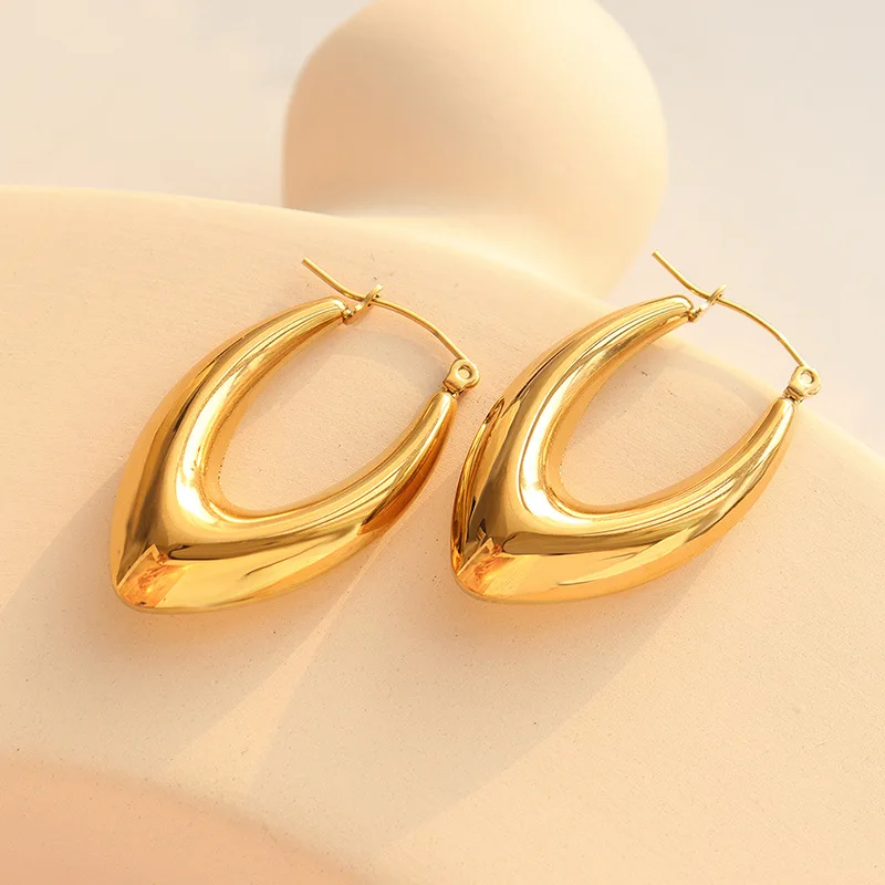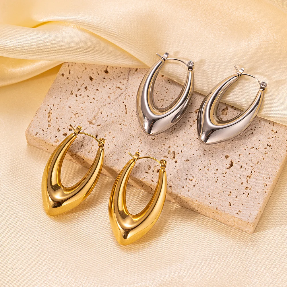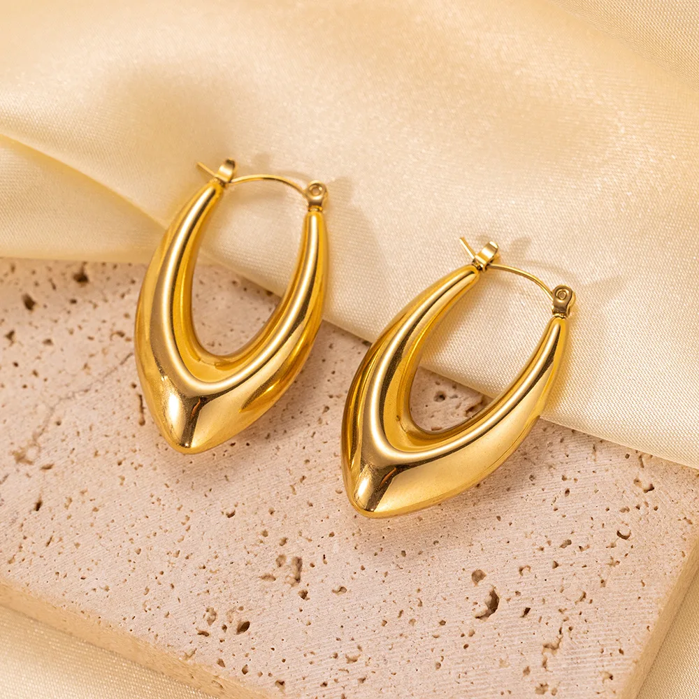 Product Name | Ouj Wholesale Office Ladies Jewelry Personality Minimalist U Shape Gold Plated 316L Stainless Steel Huggie Hoop Earrings |