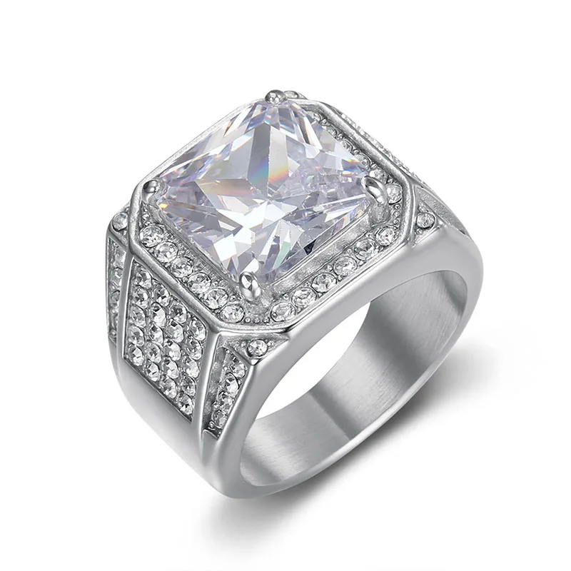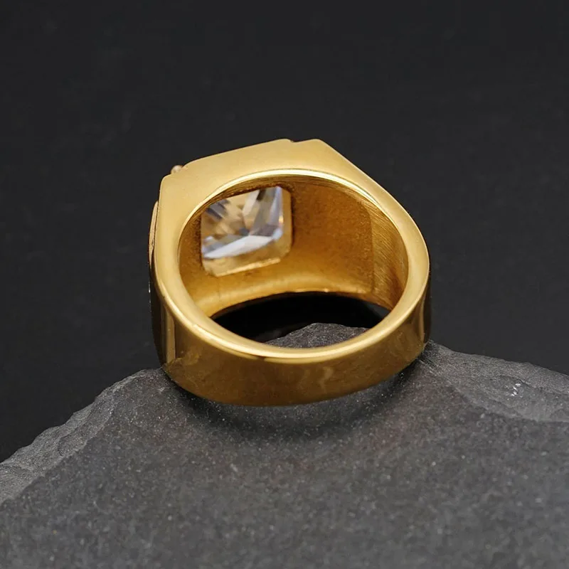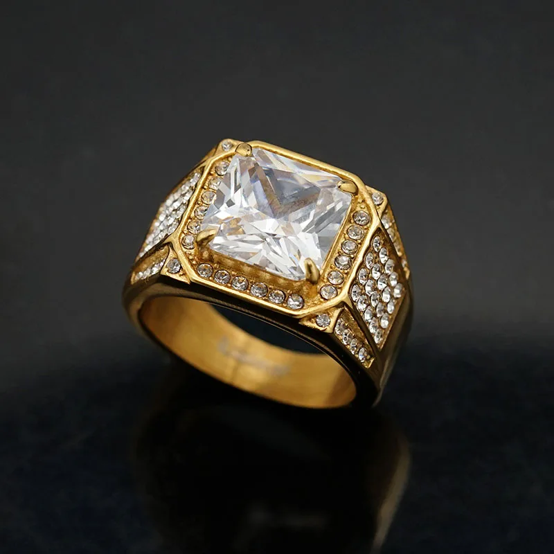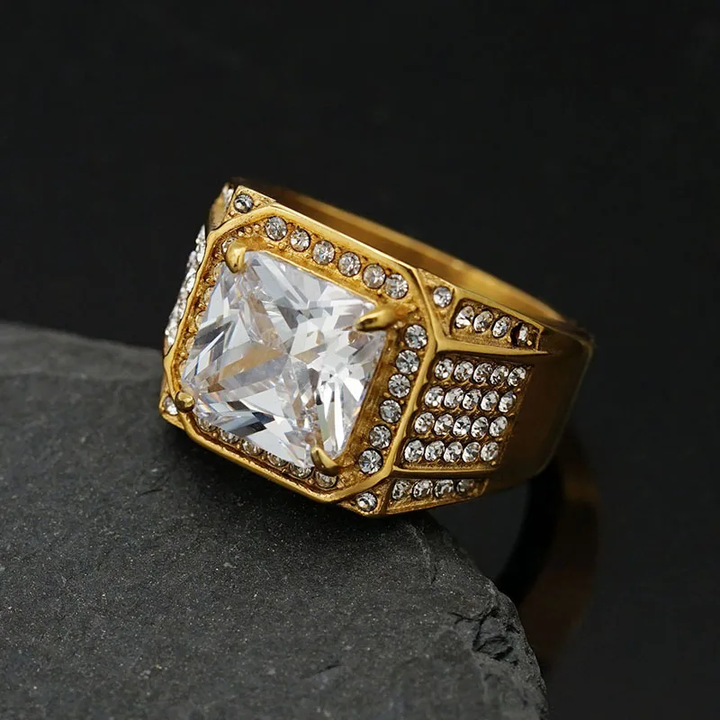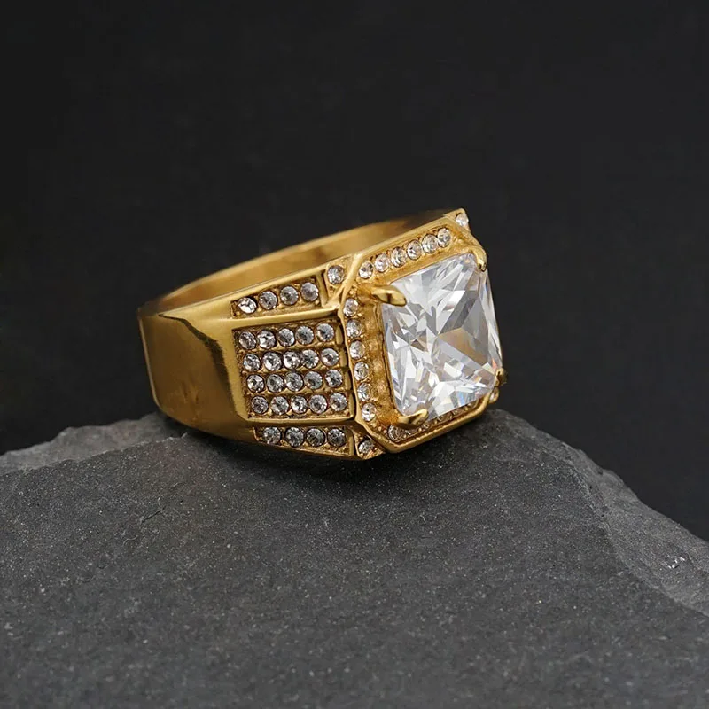 Product Name | Ouj Men Hip Hop Fashion Ring Stylish Gold Plated 316L Stainless Steel with Exaggerated Big Cubic Zirconia Good Price |