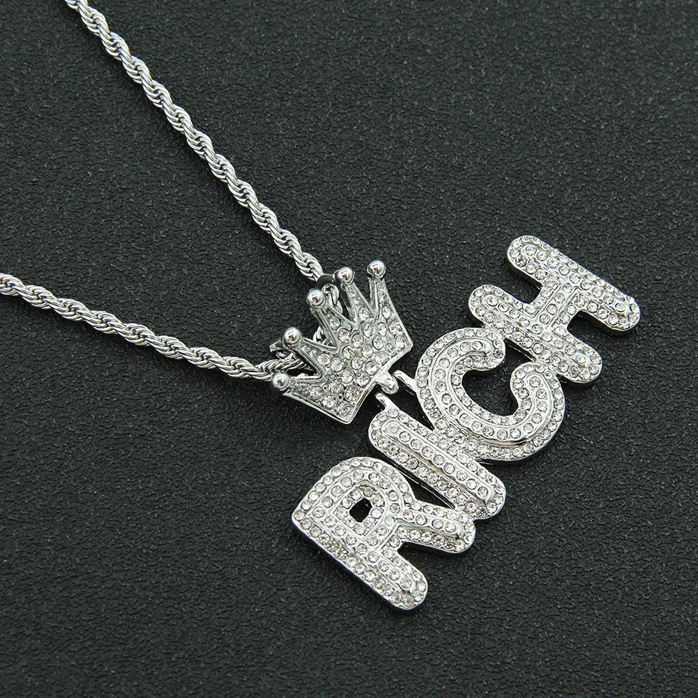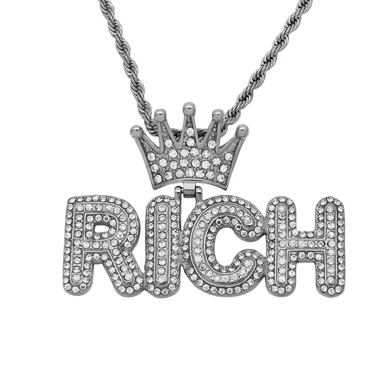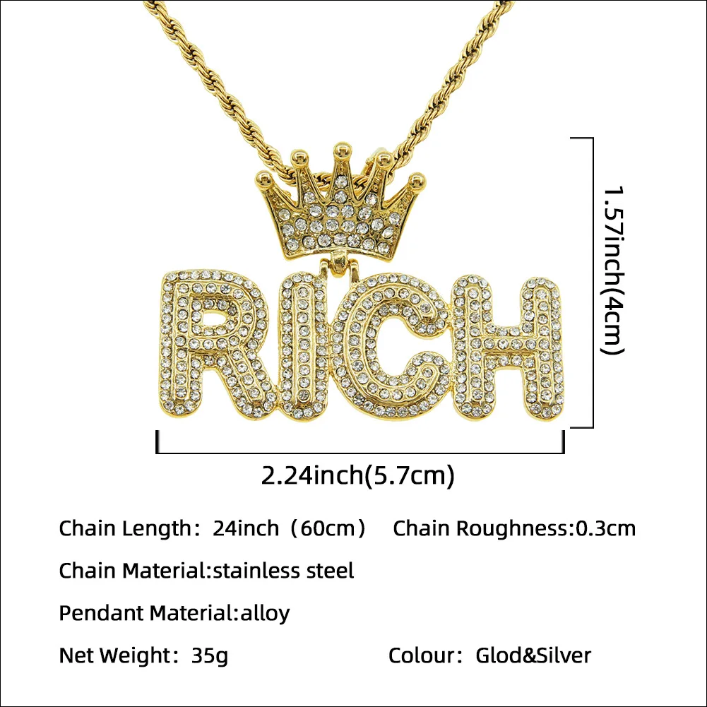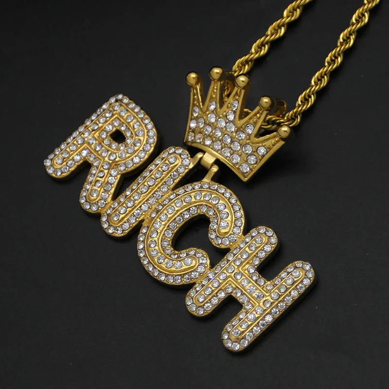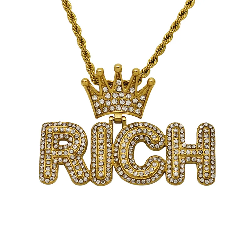 Ouj Women 18K Gold Plated 316L Stainless Steel Hollow Crown Pendant Water-Resistant Diamond RICH Fashion Pendants Charms