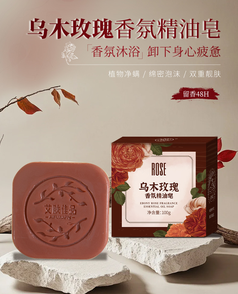 ebony rose fragrance essential oil soap 100g (foaming net for free in exquisite packaging)