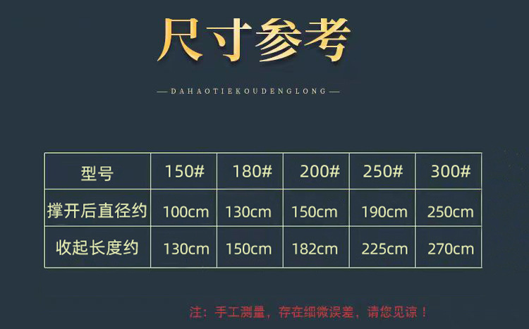 | 300#(the opening diameter is about 250cm and the length is about 270cm) | ¥607.5 | 4858 piece available |