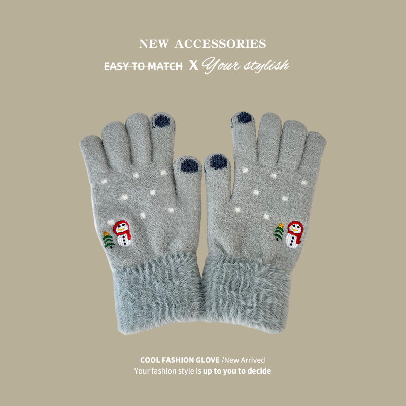 snowman christmas tree knitted gloves-[gray]