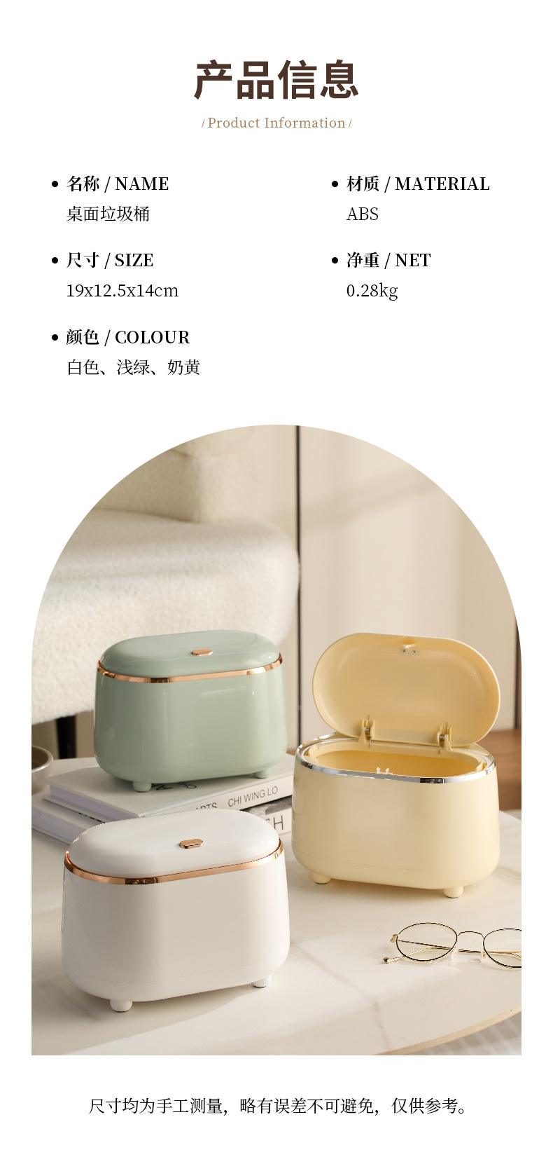 Product Name: Elegant and Light Desk Trash Bin with Oval Shape