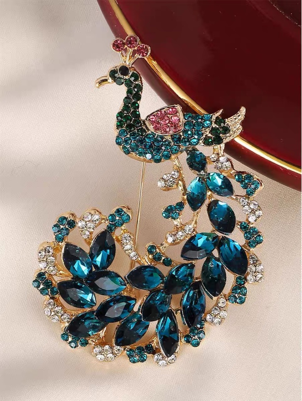peacock brooch high-grade alloy inlaid heavy industry retro affordable luxury bird animal corsage pin