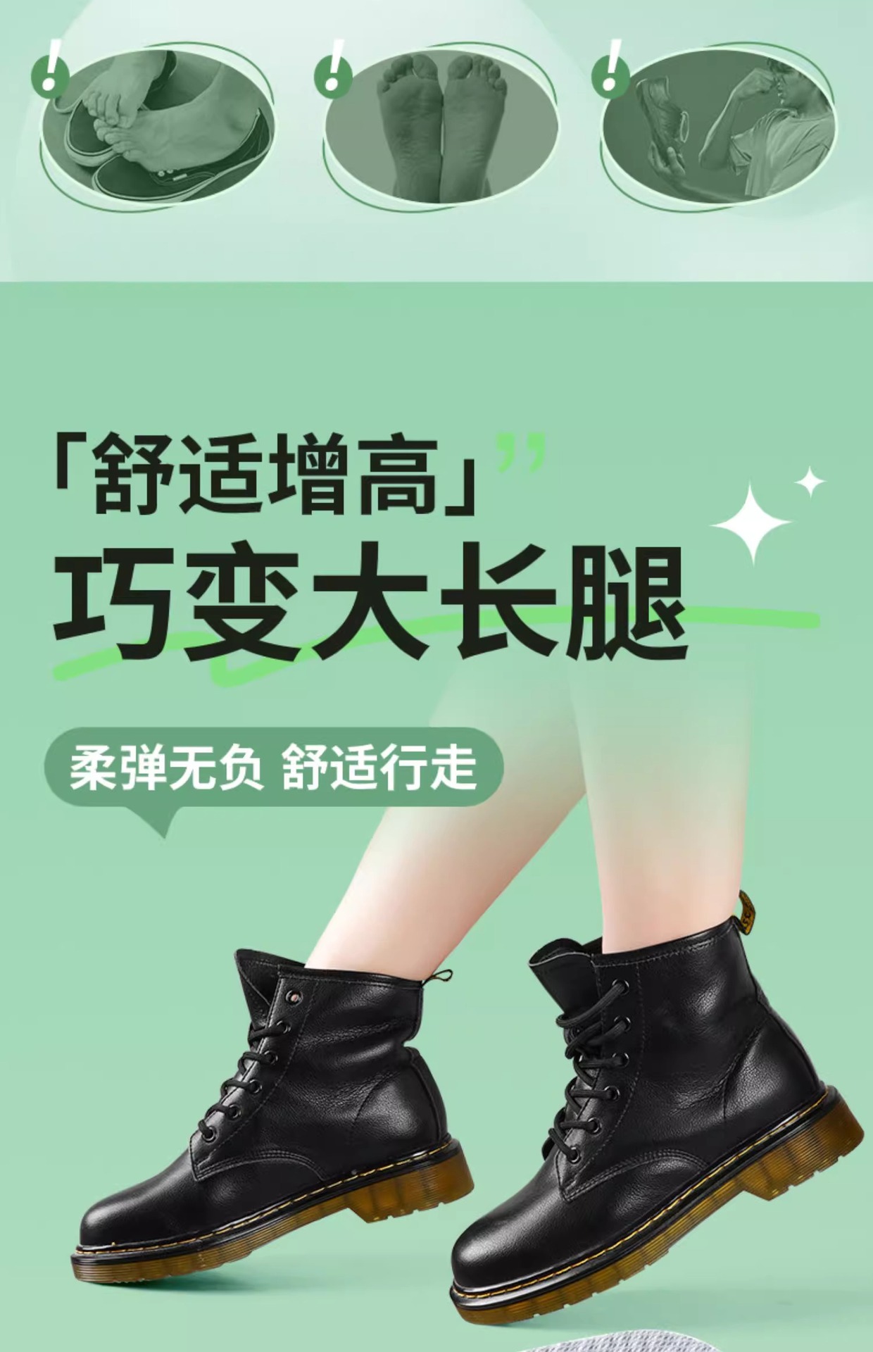 boots casual shoes inner not tired shock absorption pu heightened sneakers insole men and women sweat-absorbing deodorant foot shit feeling warm shoes