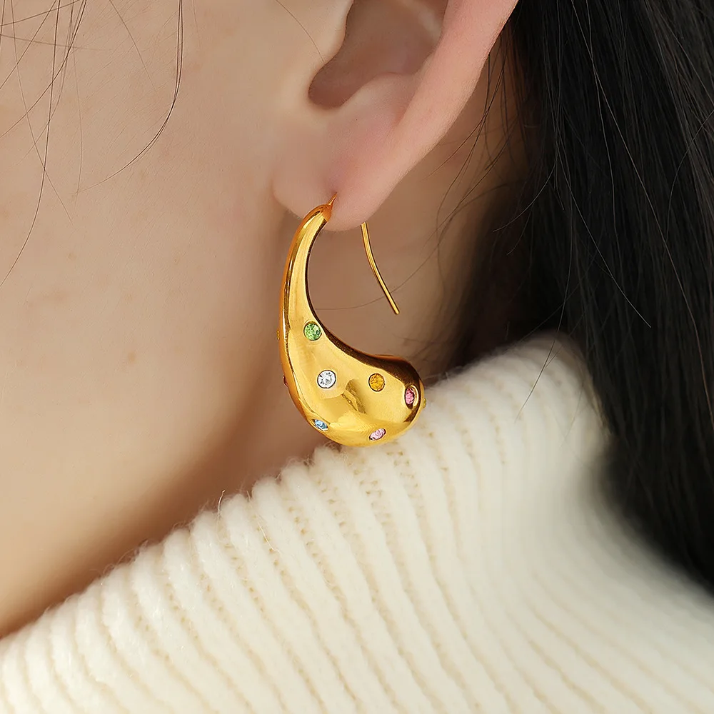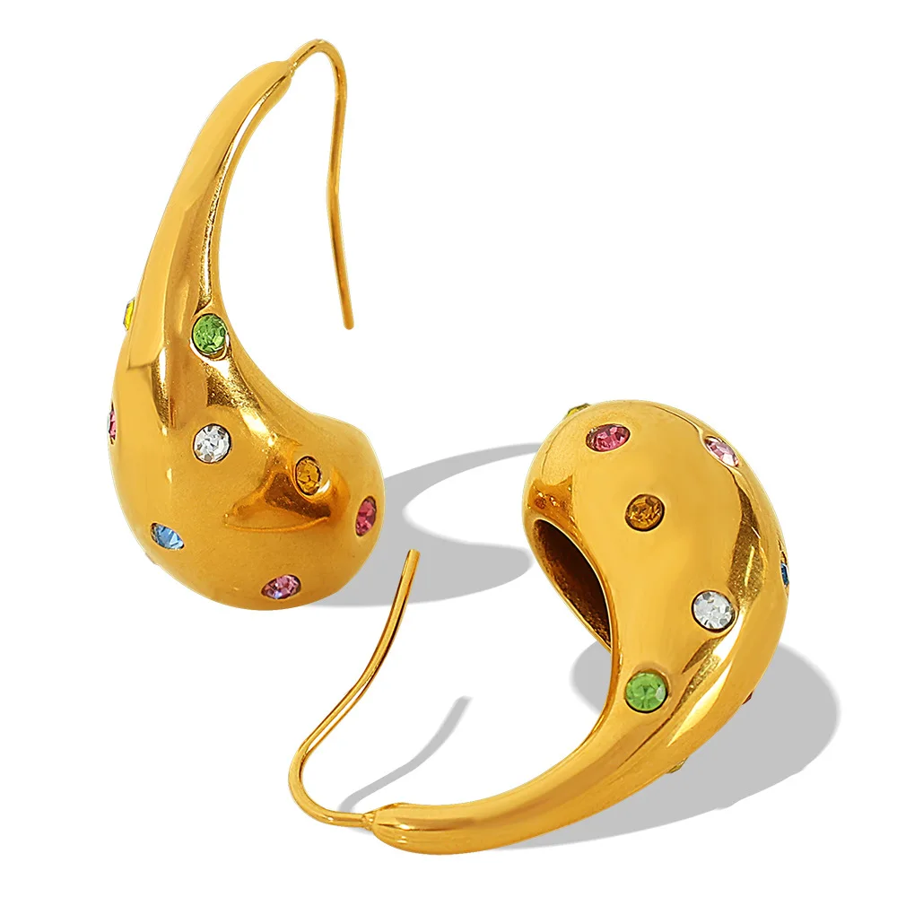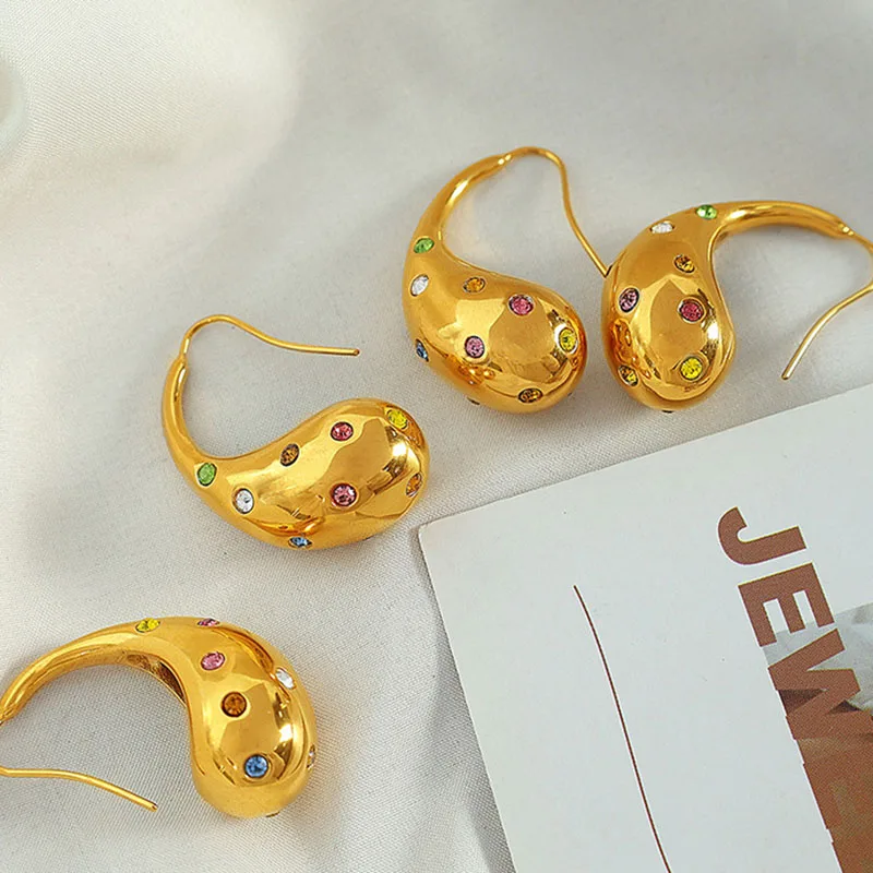 Ouj Chunky New Designs Colorful Rhinestone Stainless Steel Girls Water Drop Dangling Drop Earring Party Accessories Jewelry