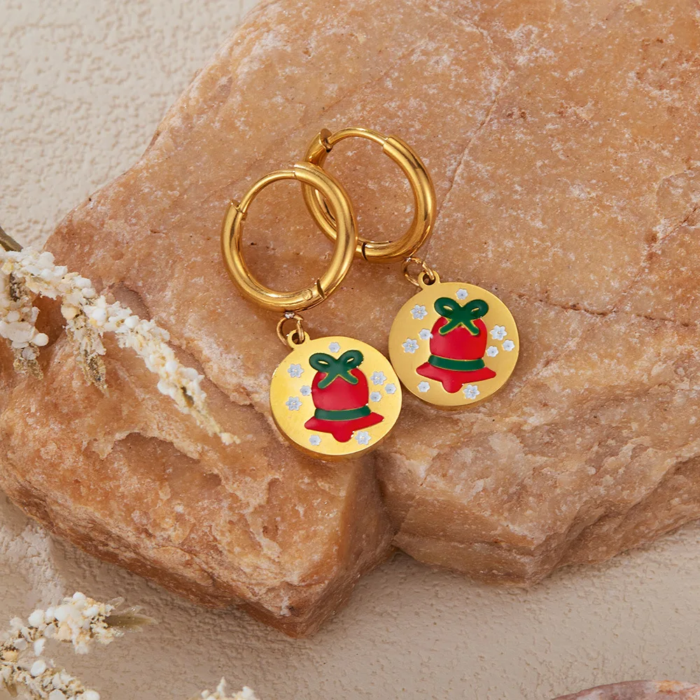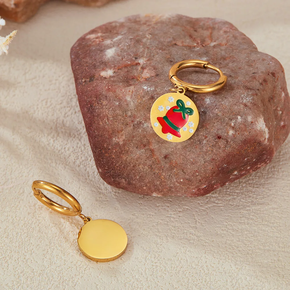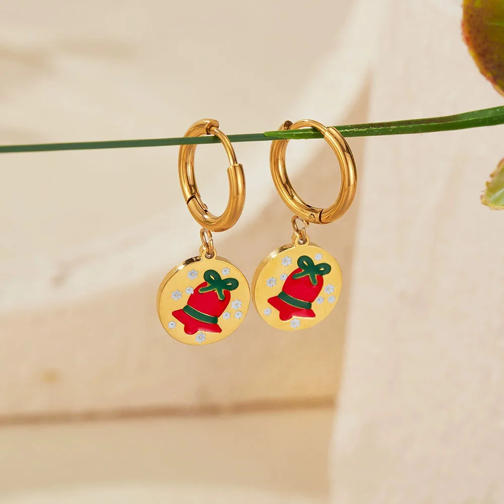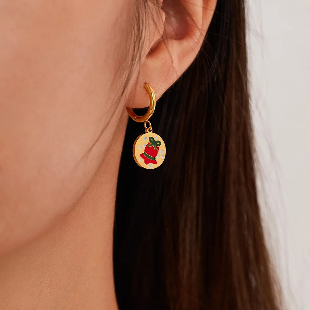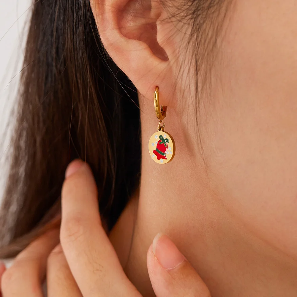 Product Name | Ouj Dainty Cute Enamel Design Gold Stainless Steel Stainless Steel Huggie Hoop Christmas Earrings With Pendant |