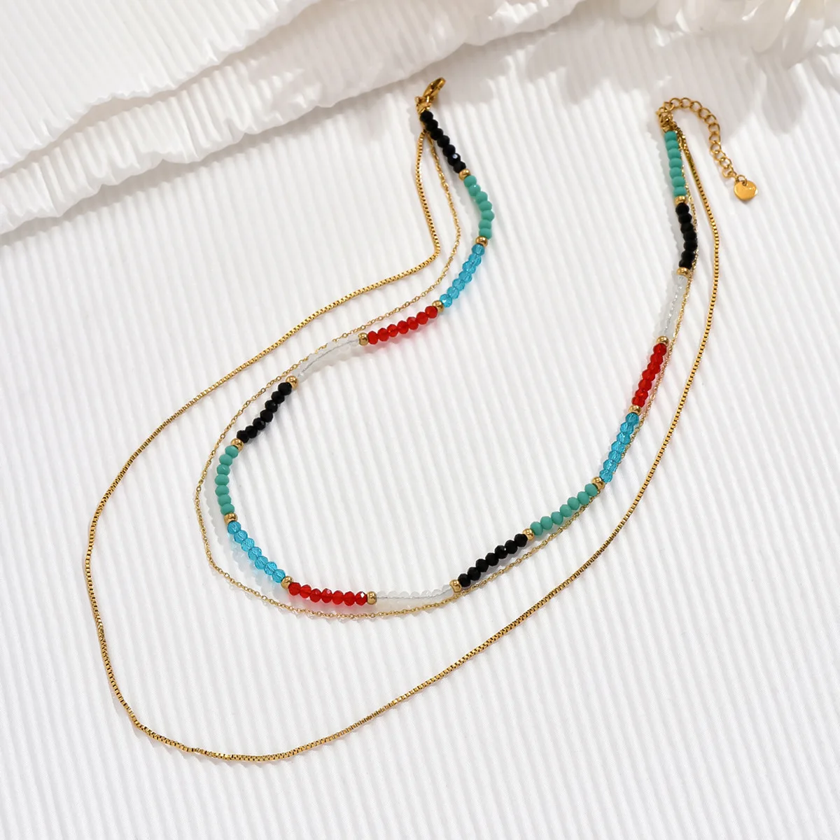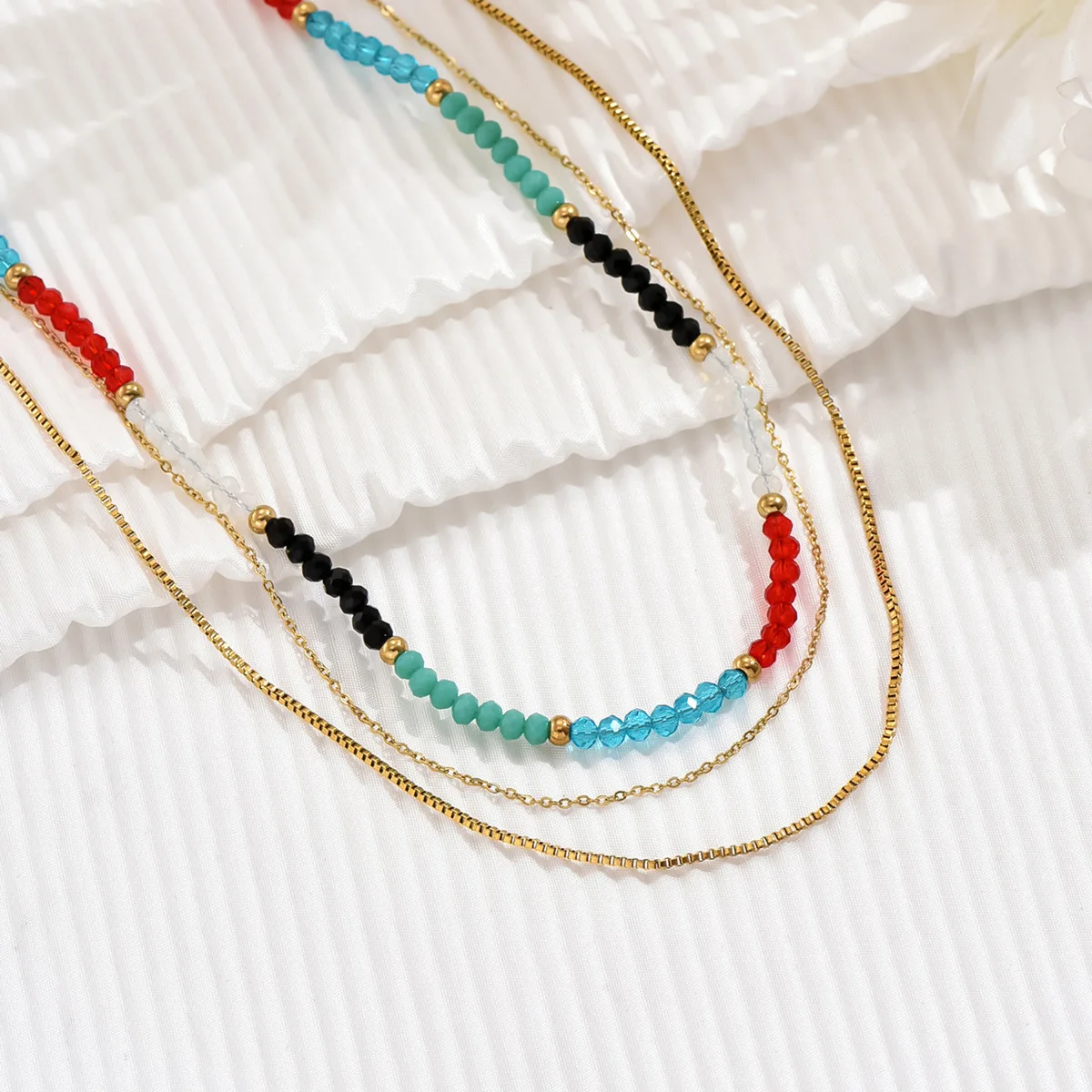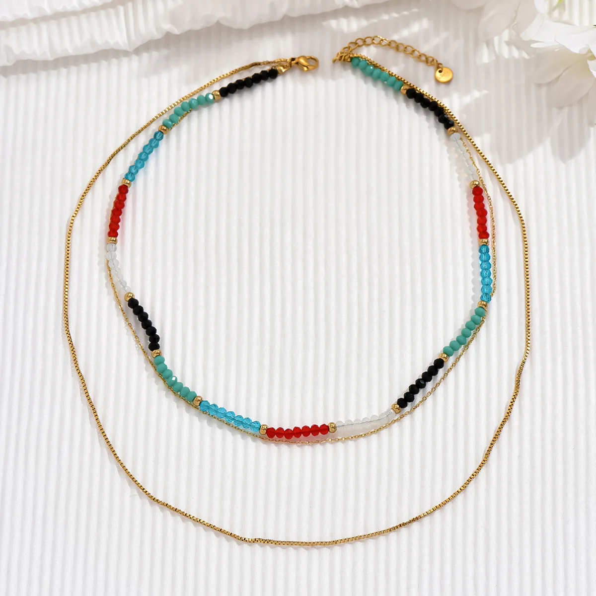 Ouj Women Summer 14K Gold Plated 316L Stainless Steel Metal Bohemian Style Tiny Colorful Beads Chain Necklace Jewelry