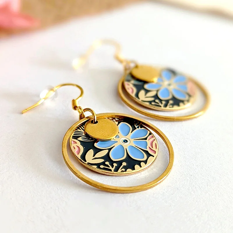 Product Name | Ouj Chic Luxury Women's Boho Style Stainless Steel Dangling Leaf Flower Pendant Drop Earrings Chic Party Accessories Jewelry |
