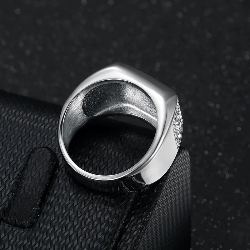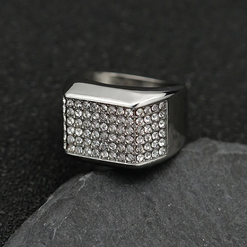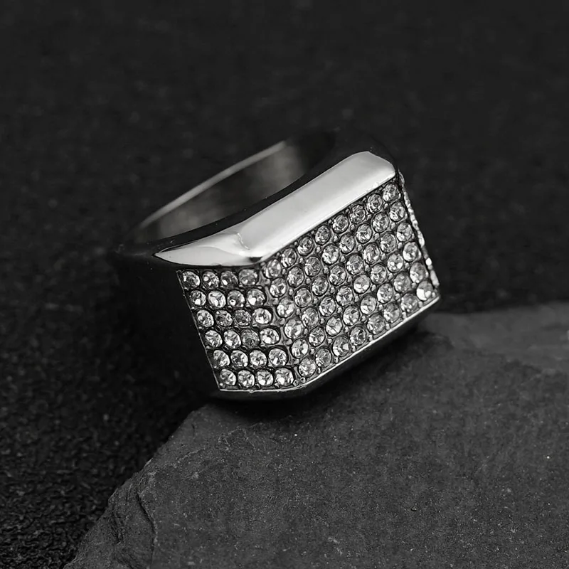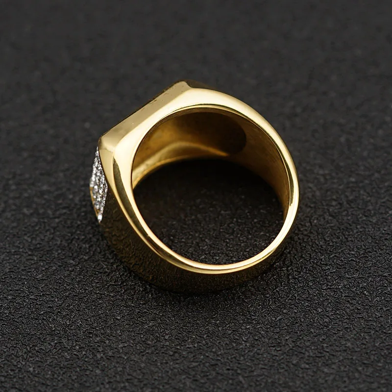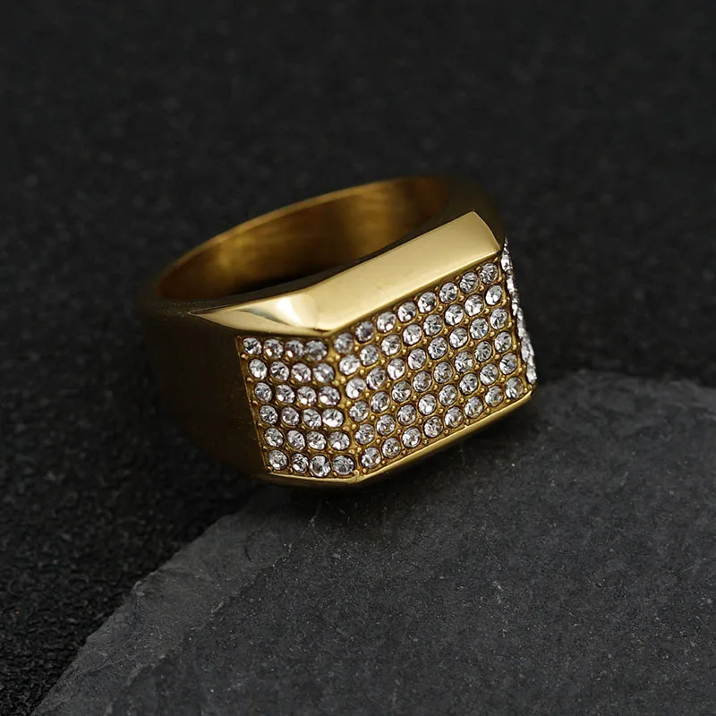 Product Name | Ouj Hot Sale Jewelry Hiphop Fashion Fancy Geometric Rhinestone Gold Plated Male 316L Stainless Steel Men Band Rings |