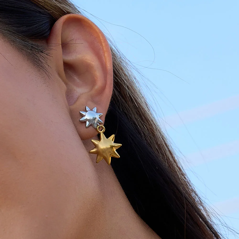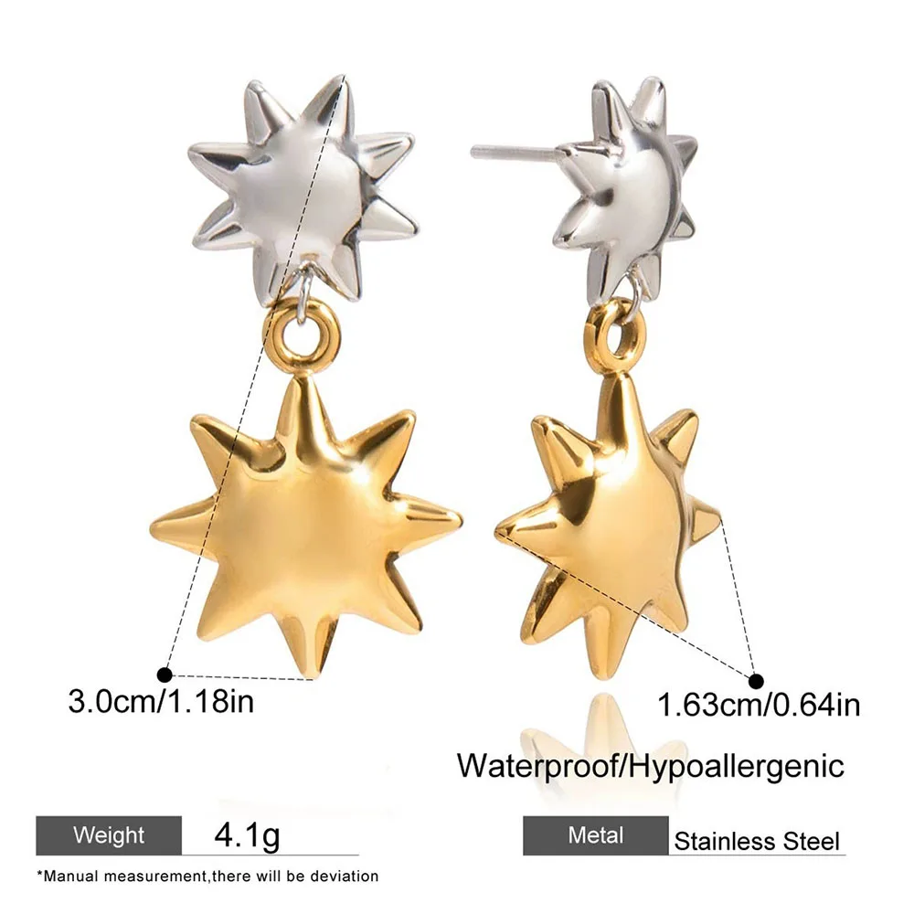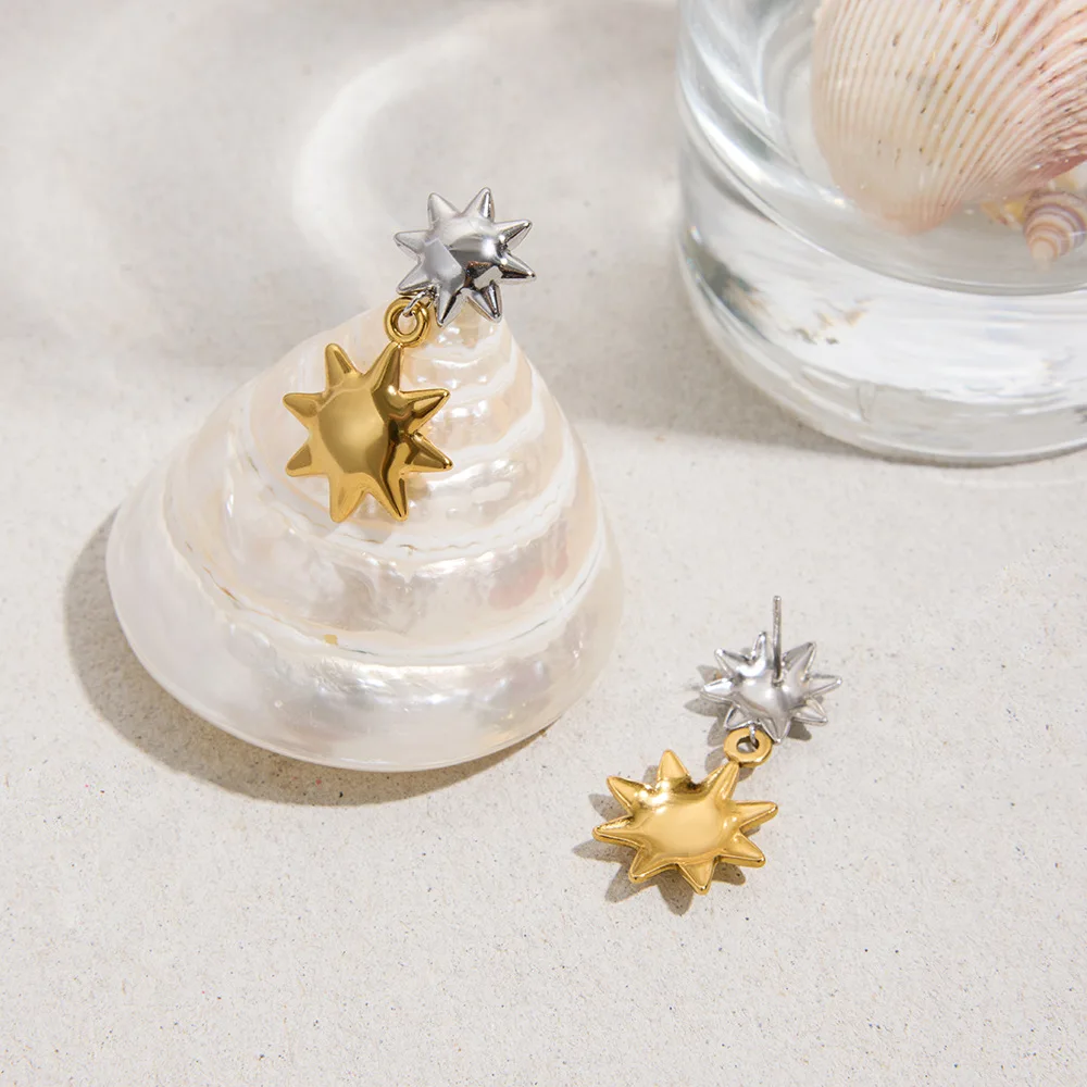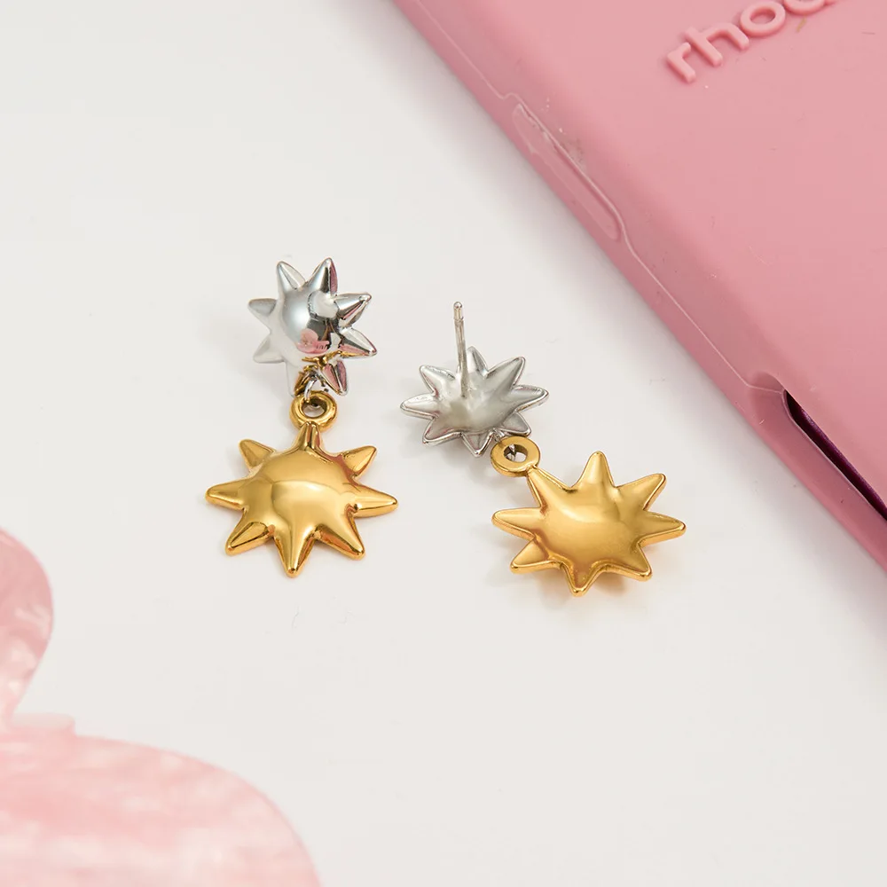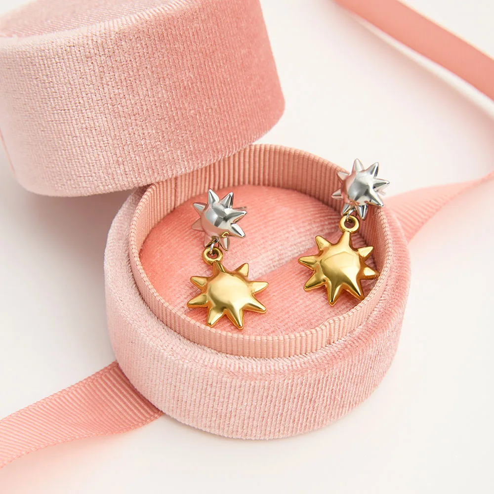 Product Name | Ouj Trendy Double Color Gold Plated Anti Tarnish Stainless Steel Stud Sun Earrings with Charms Pendant |