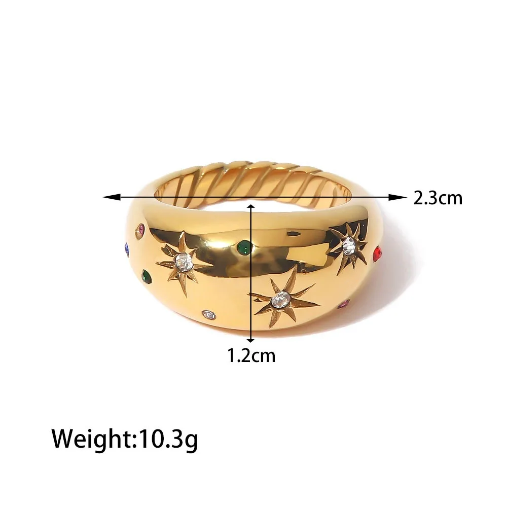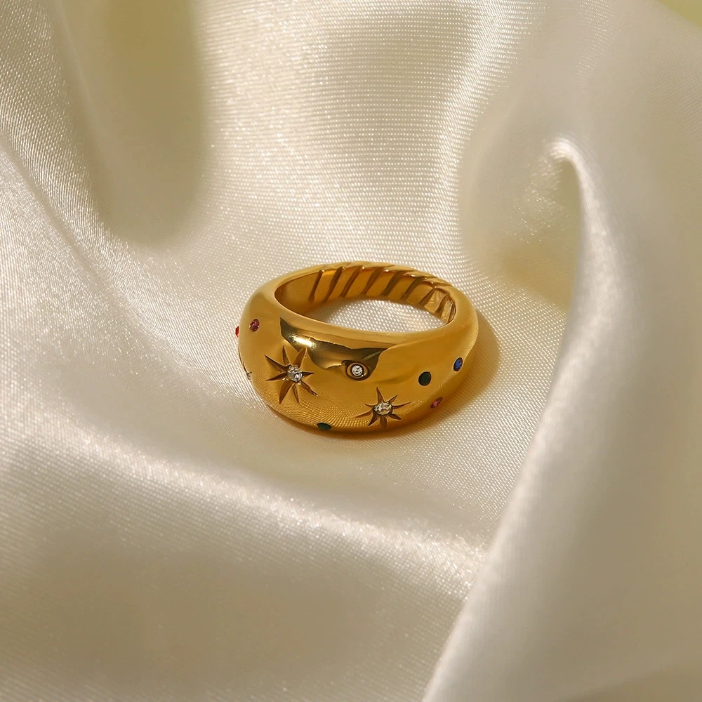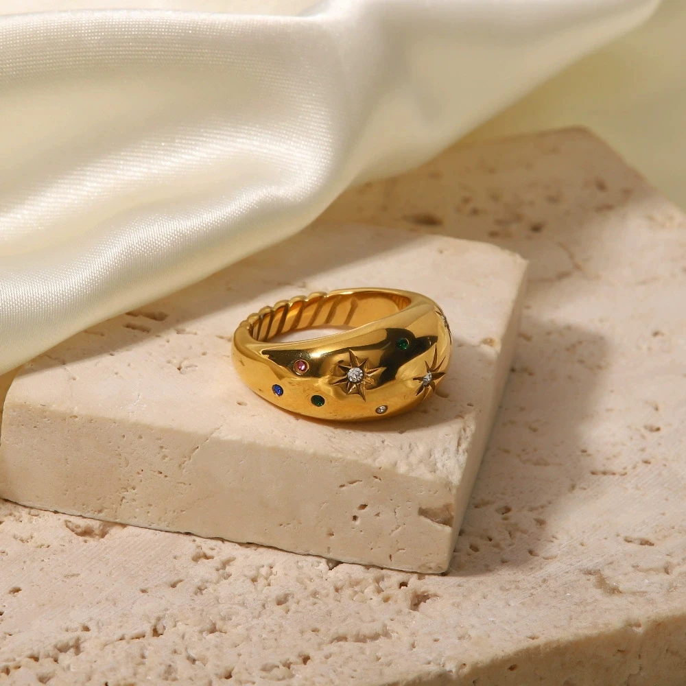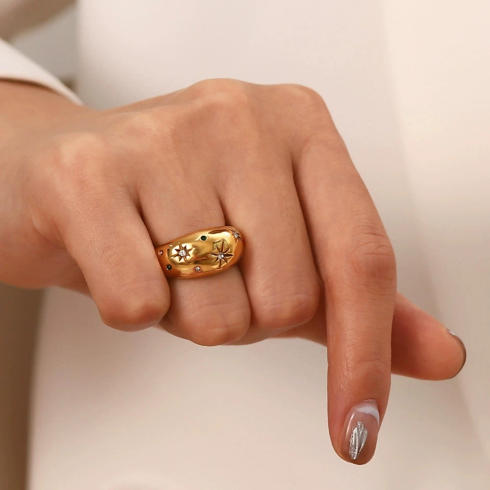 Product Name | Ouj Hot Popular New Design Fashion Chunky Gold Plated 316 Stainless Steel Star of David Cubic Zirconia Ring for Girls |
