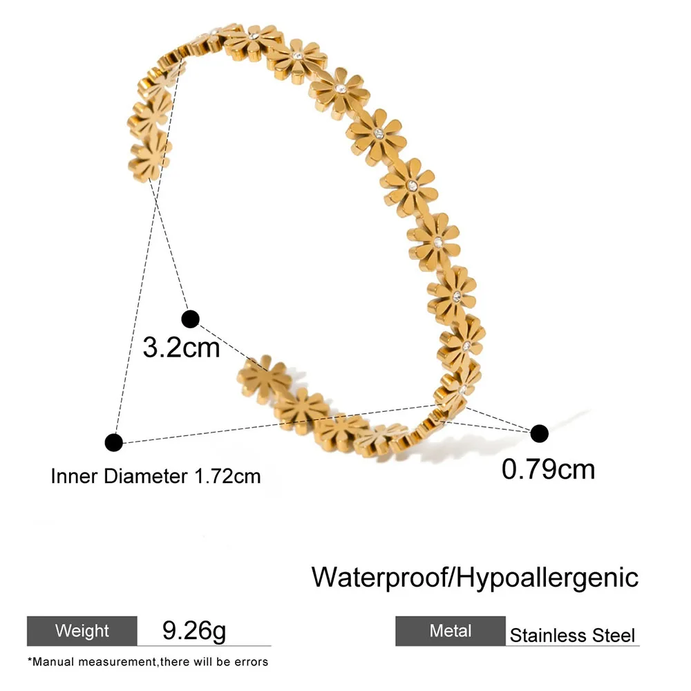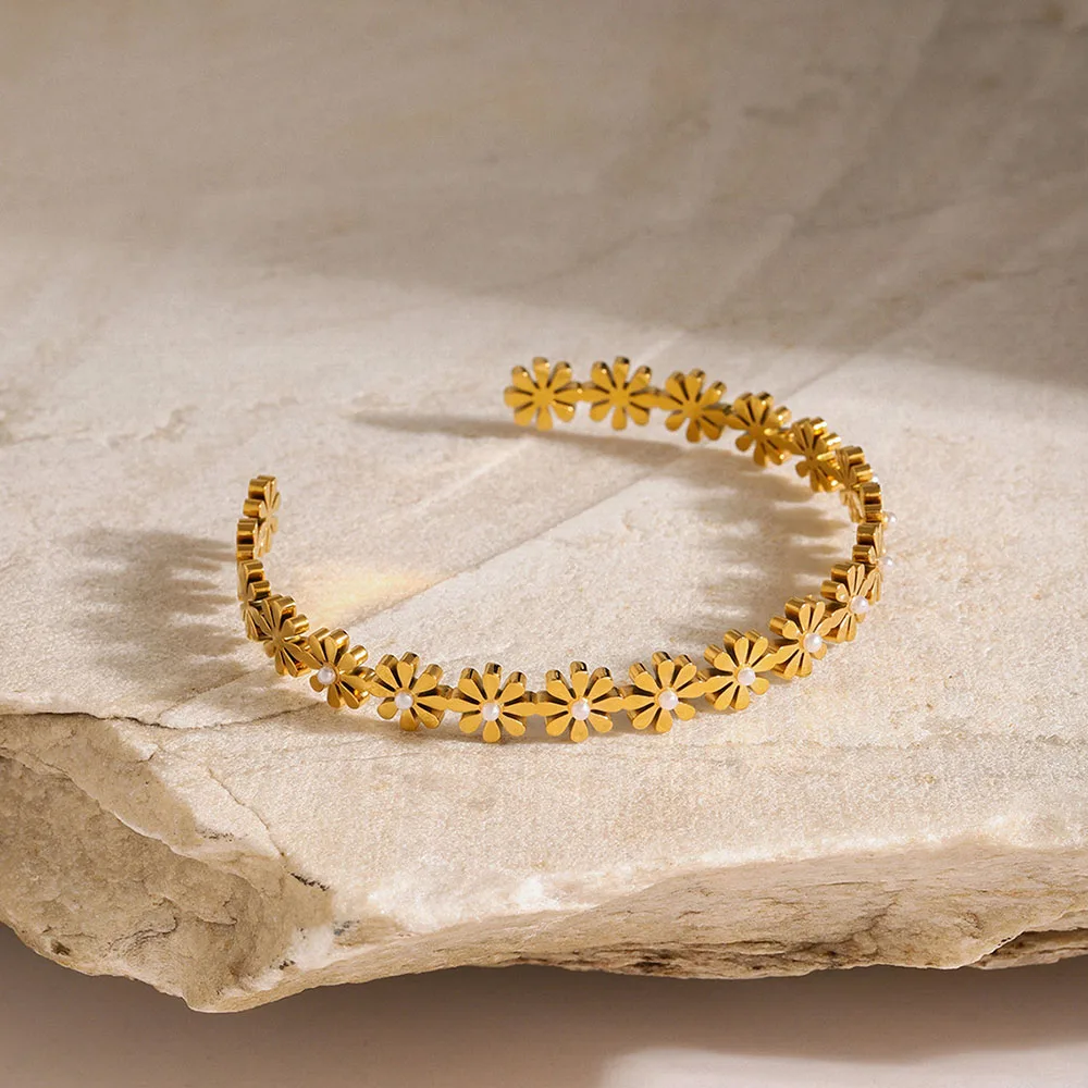 Product Name | Ouj Casual Women's Elegant Metal 18K Gold Plated Stainless Steel Flower Wide Cuff Bangle Bracelet |