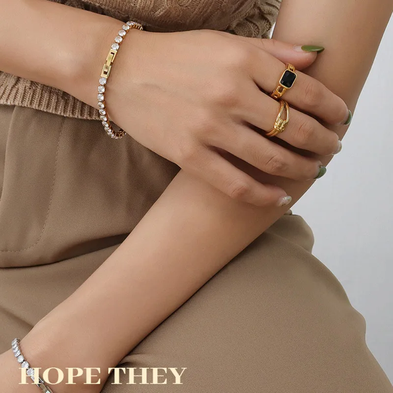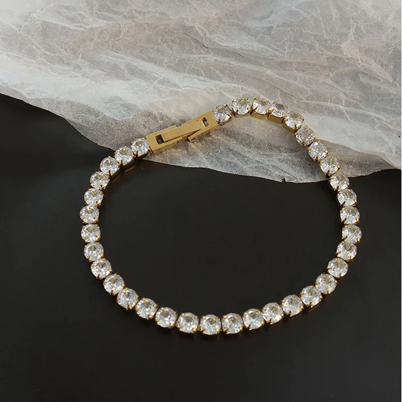 Product Name | Ouj Lady Luxury 4mm Waterproof Cubic Zirconia Paved 18K Gold Plated Fashion Stainless Steel Tennis Bracelet |