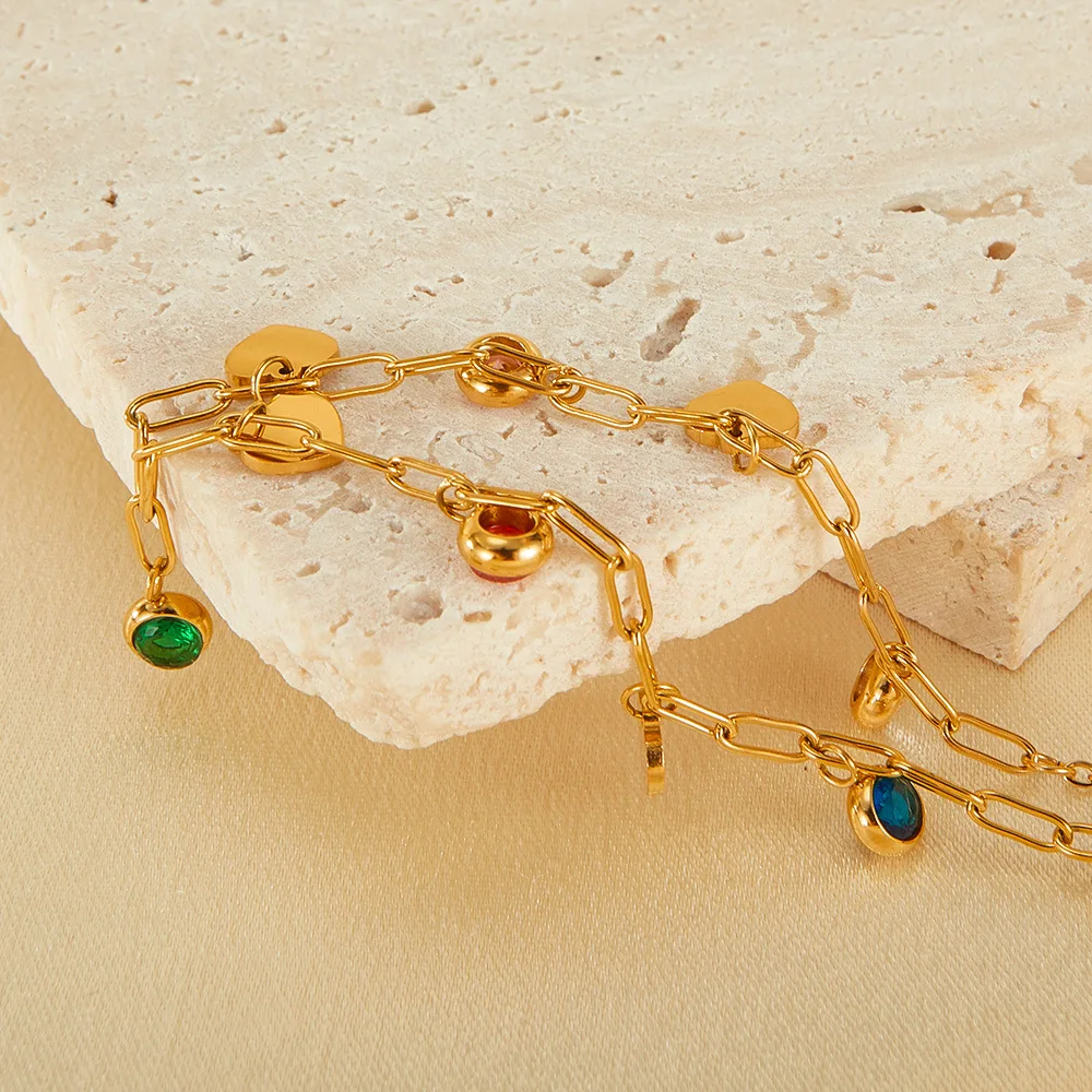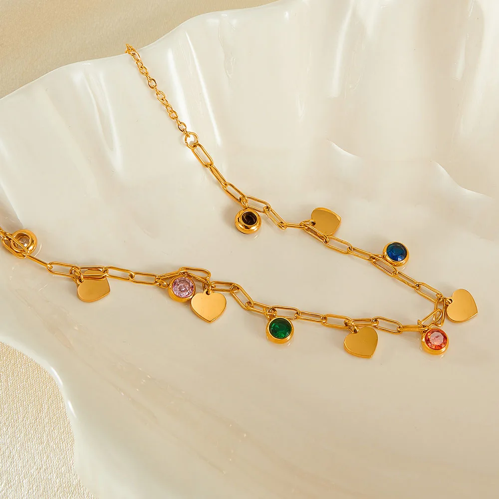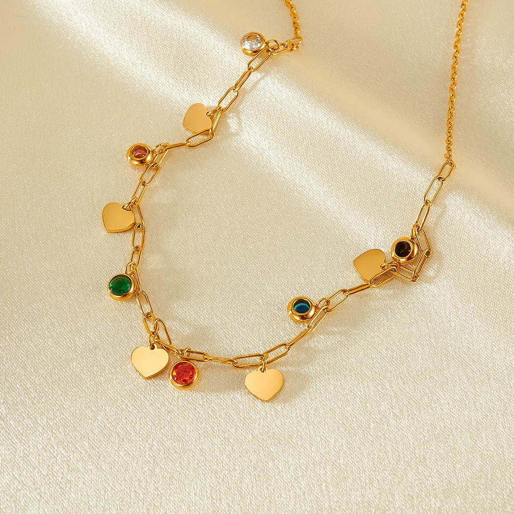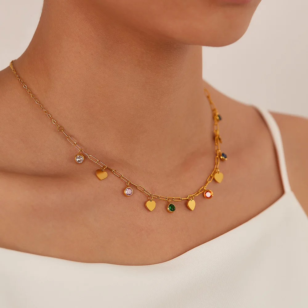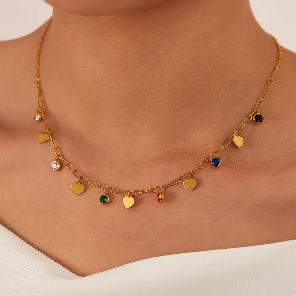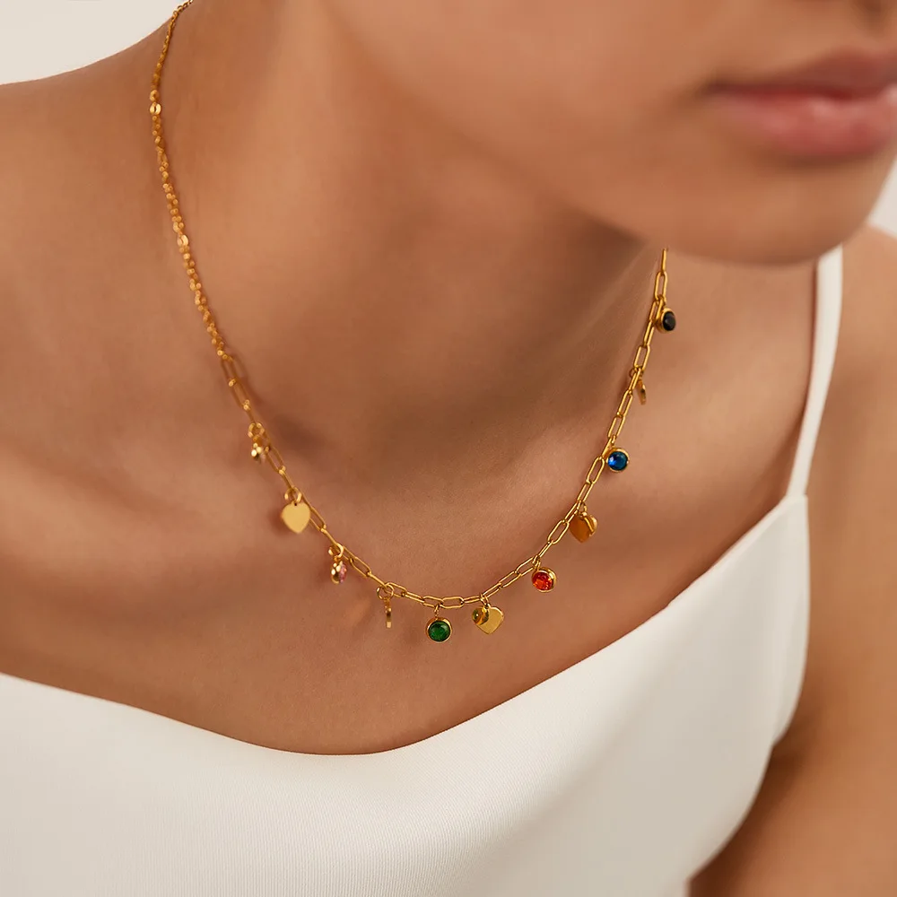 Product Name | Ouj Waterproof Colorful Cubic Zirconia Gold Plated Stainless Steel Peach Heart Charm Adjustable Chain Necklace Jewelry For Lady |
