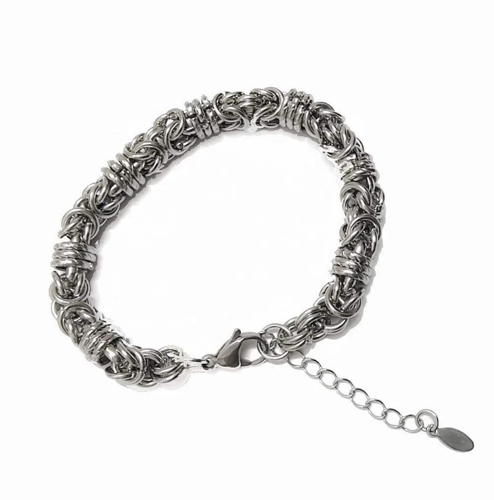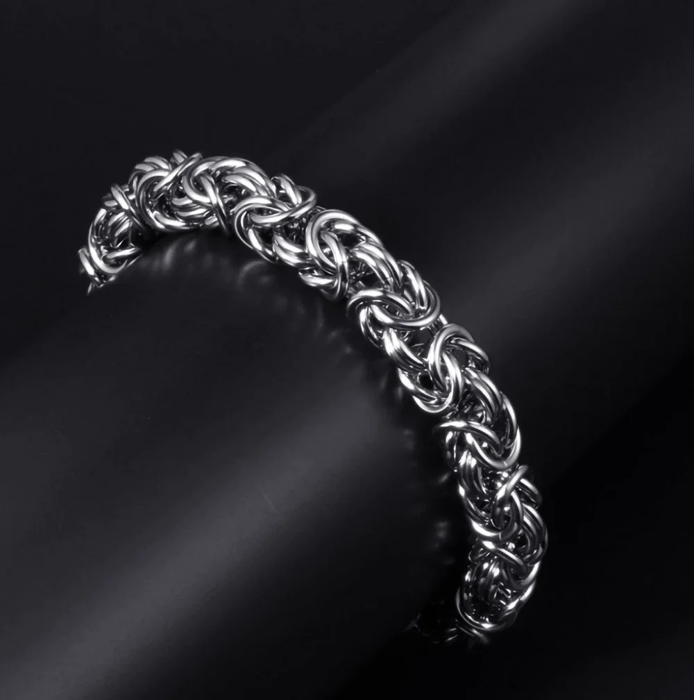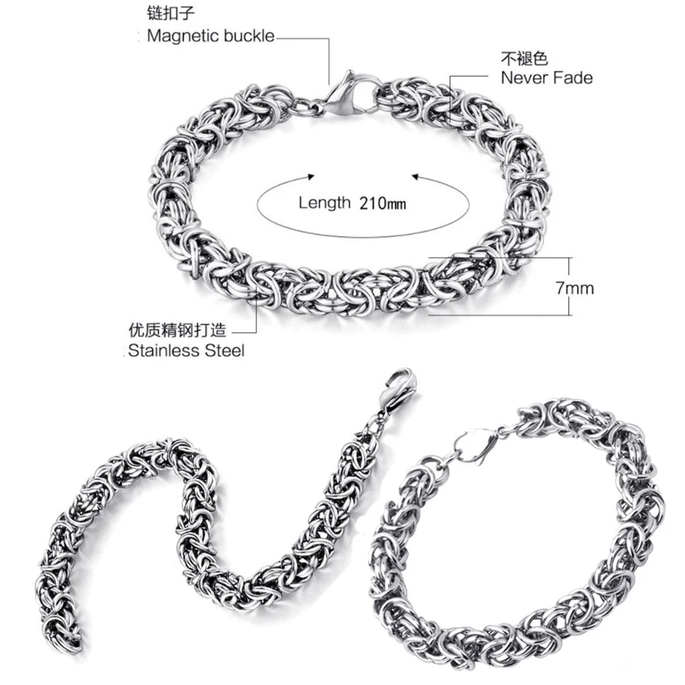 Ouj Antique Silver 316L Stainless Steel Men Jewelry Byzantine 7mm 8mm Hip Hop Link Chain Bracelet