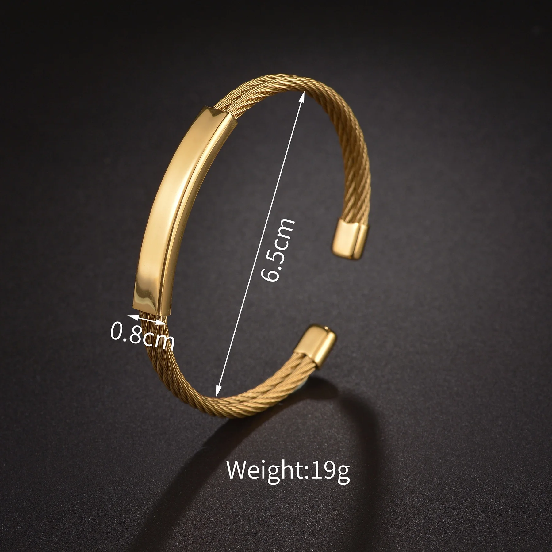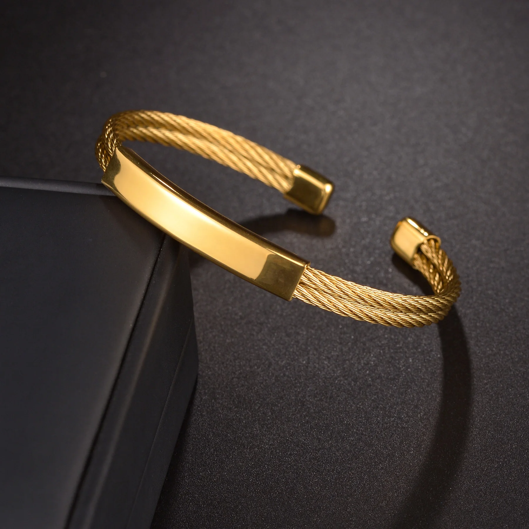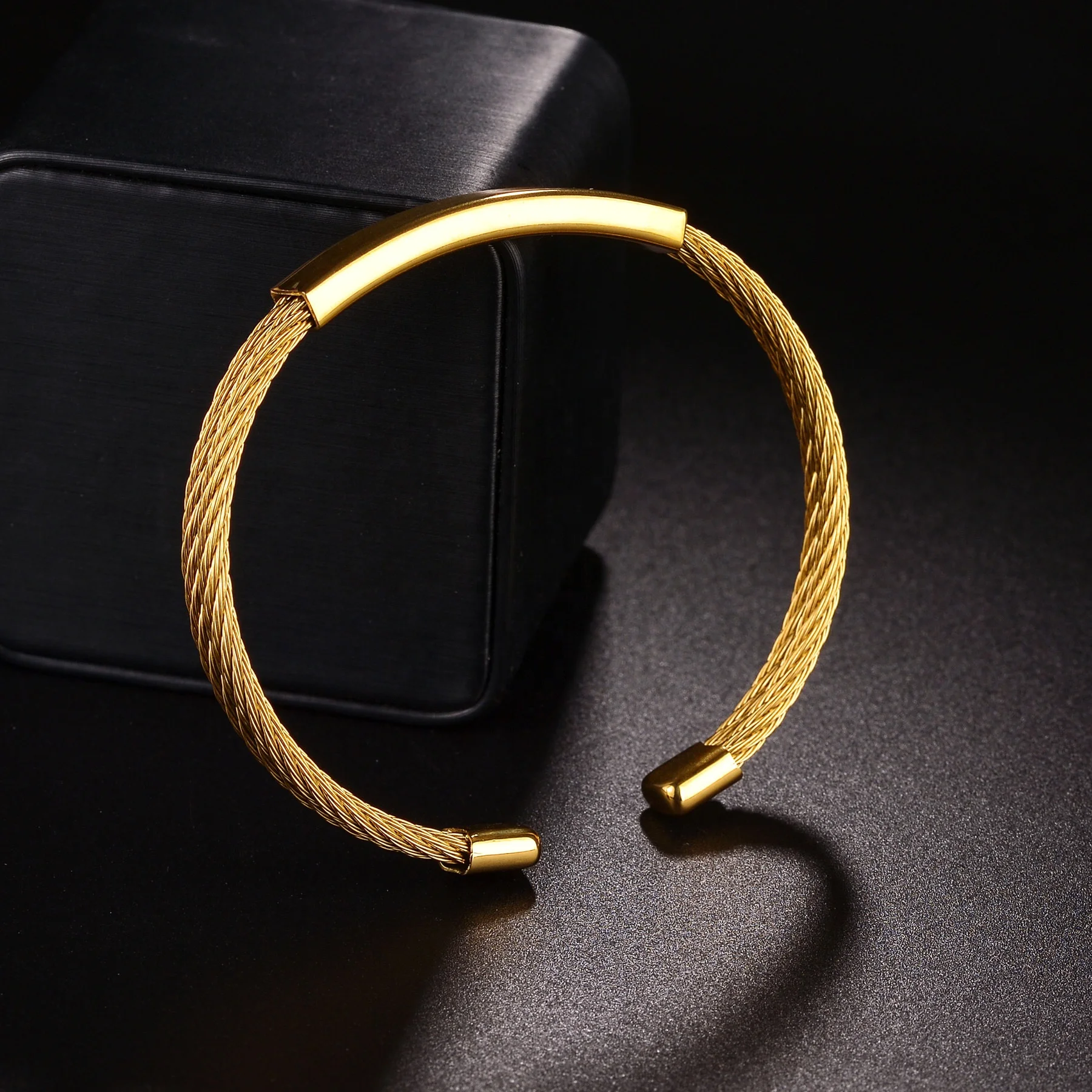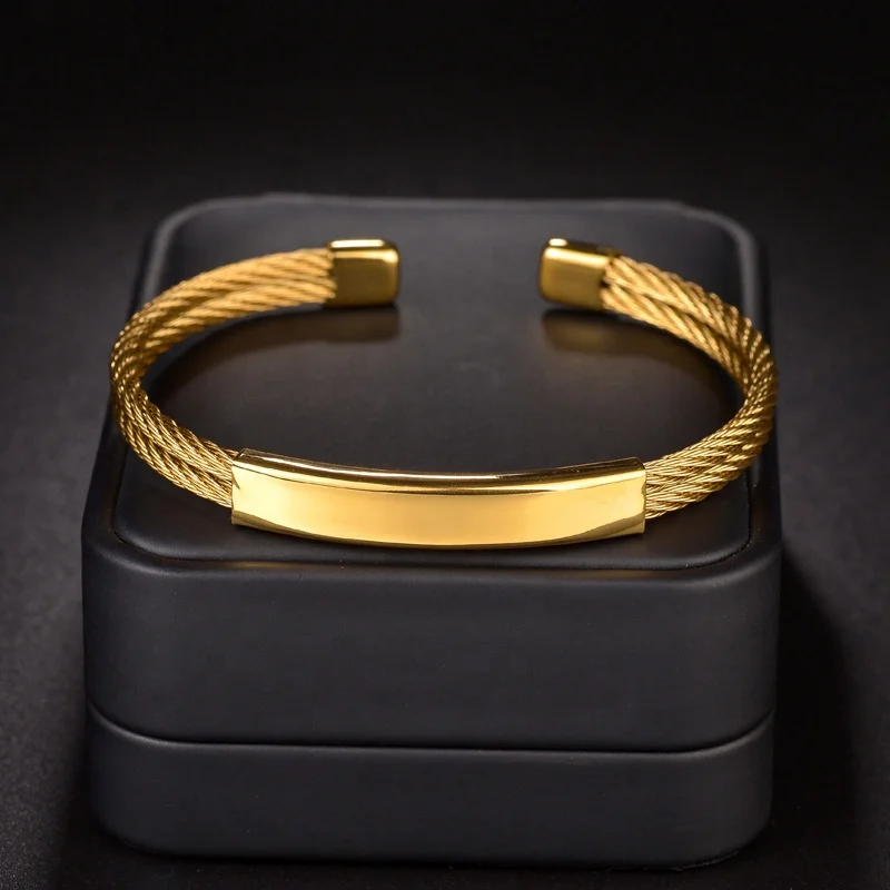 Ouj New Stainless Steel 18k Gold Plated Bent Pipe Steel Wire Customized Open Bracelet for Gift