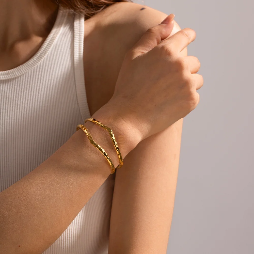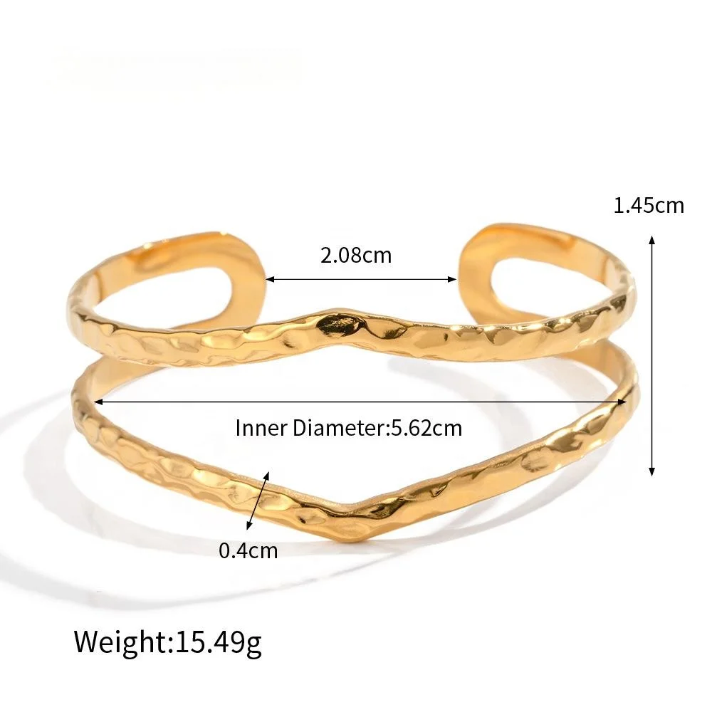 Product Name | Ouj Stainless Steel Irregular Hammer Geometric Pattern 18k Double Layer Waterproof Perforated Bracelet |