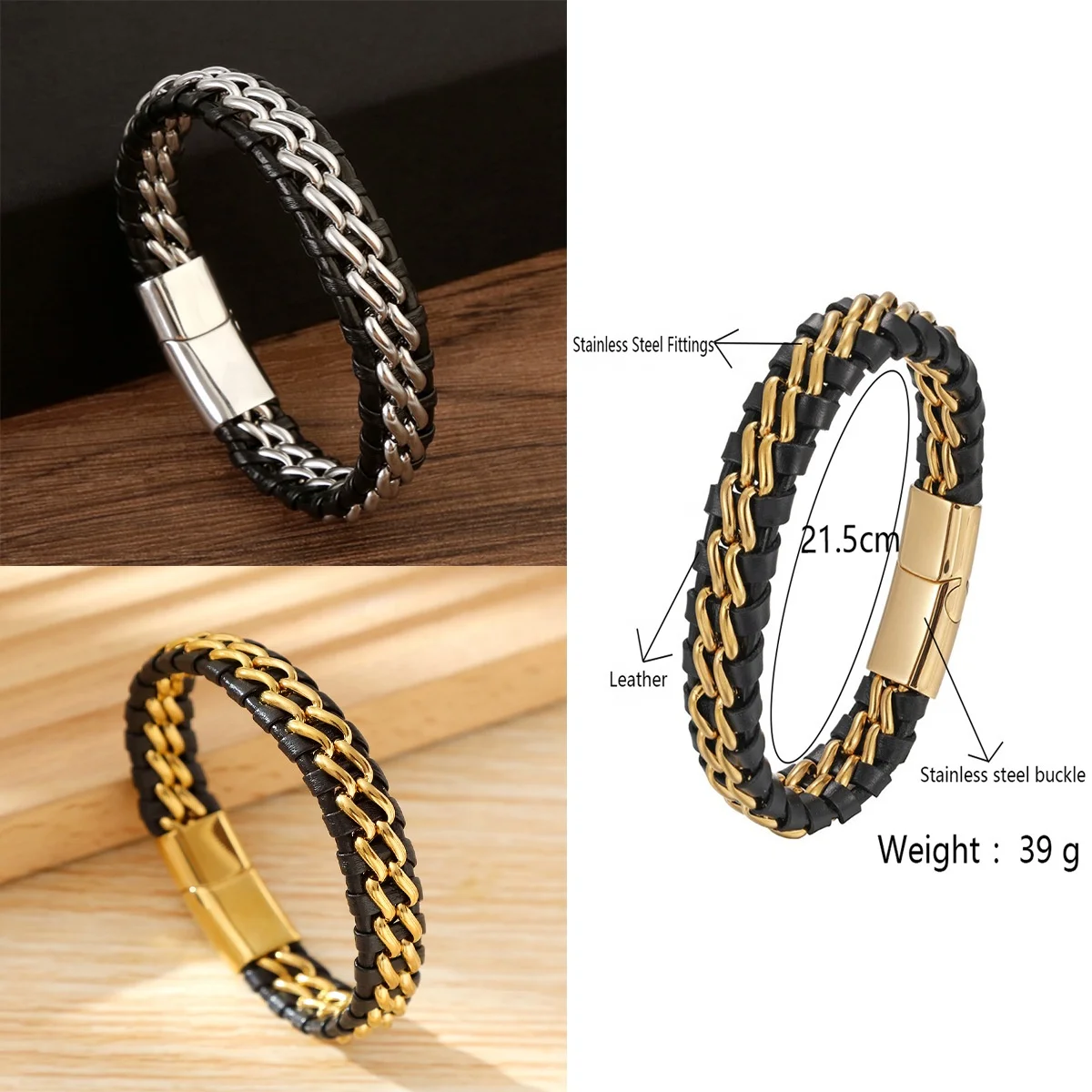 Ouj Fashion High Quality Stainless Steel Men's Bracelet Double Chain Braided Bracelet Customizable logo