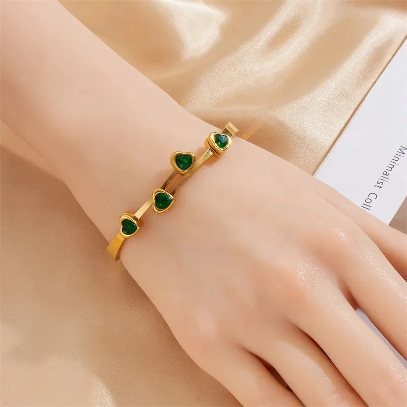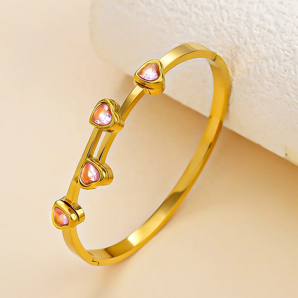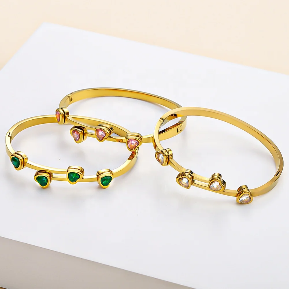 Ouj New Stainless Steel Bracelet Tarnish-Free 18K PVD Gold Heart Fashionable Bangle for Women in 3 Colors
