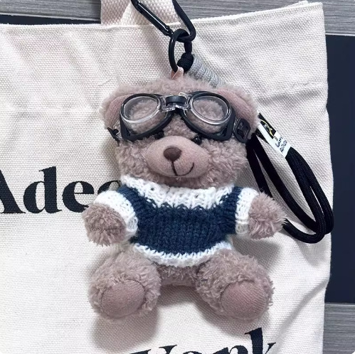 coffee color bear 1/with glasses + blue clothing + black lanyard