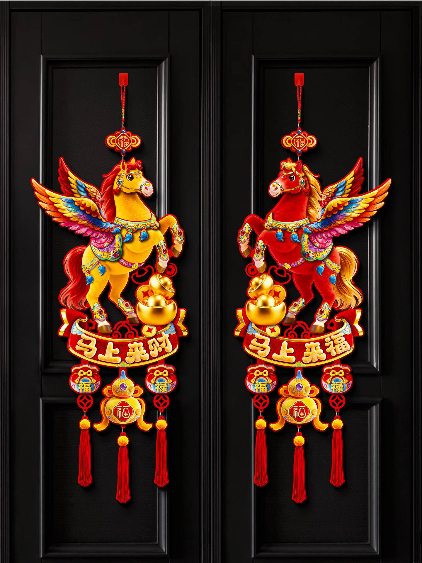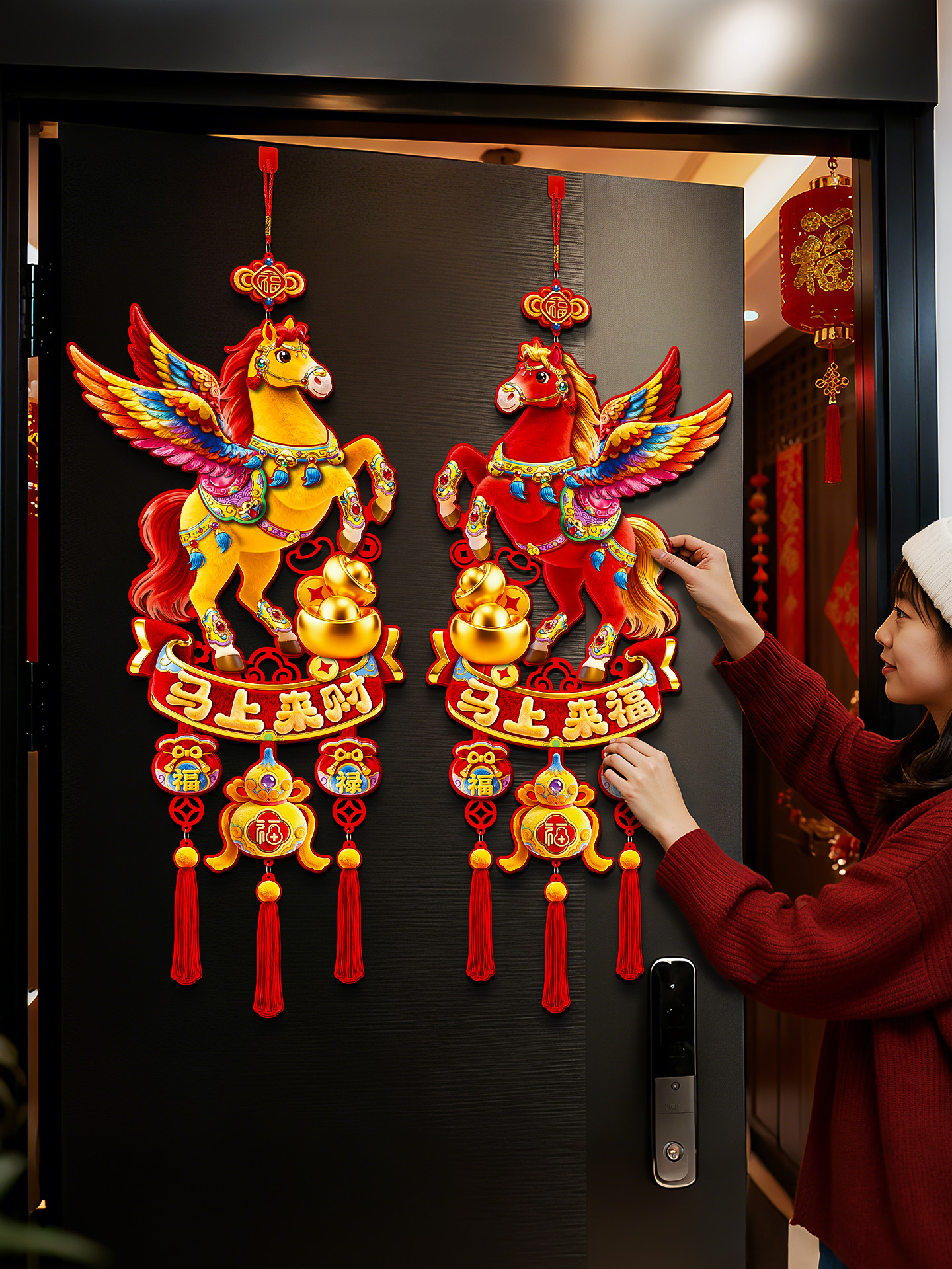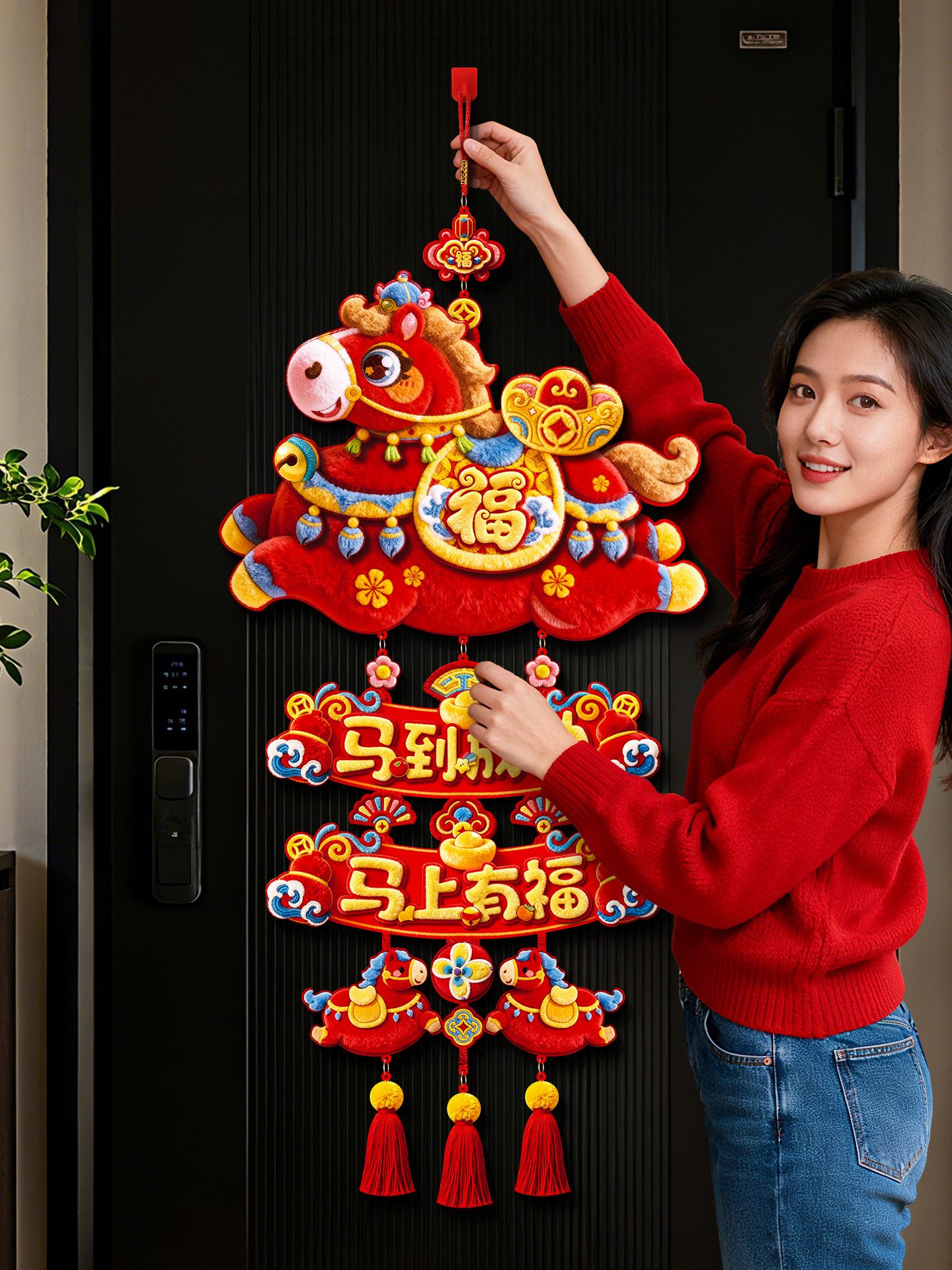 year of the horse big luck + fu come to my home three-in-one hanging (5d plush visual sense)