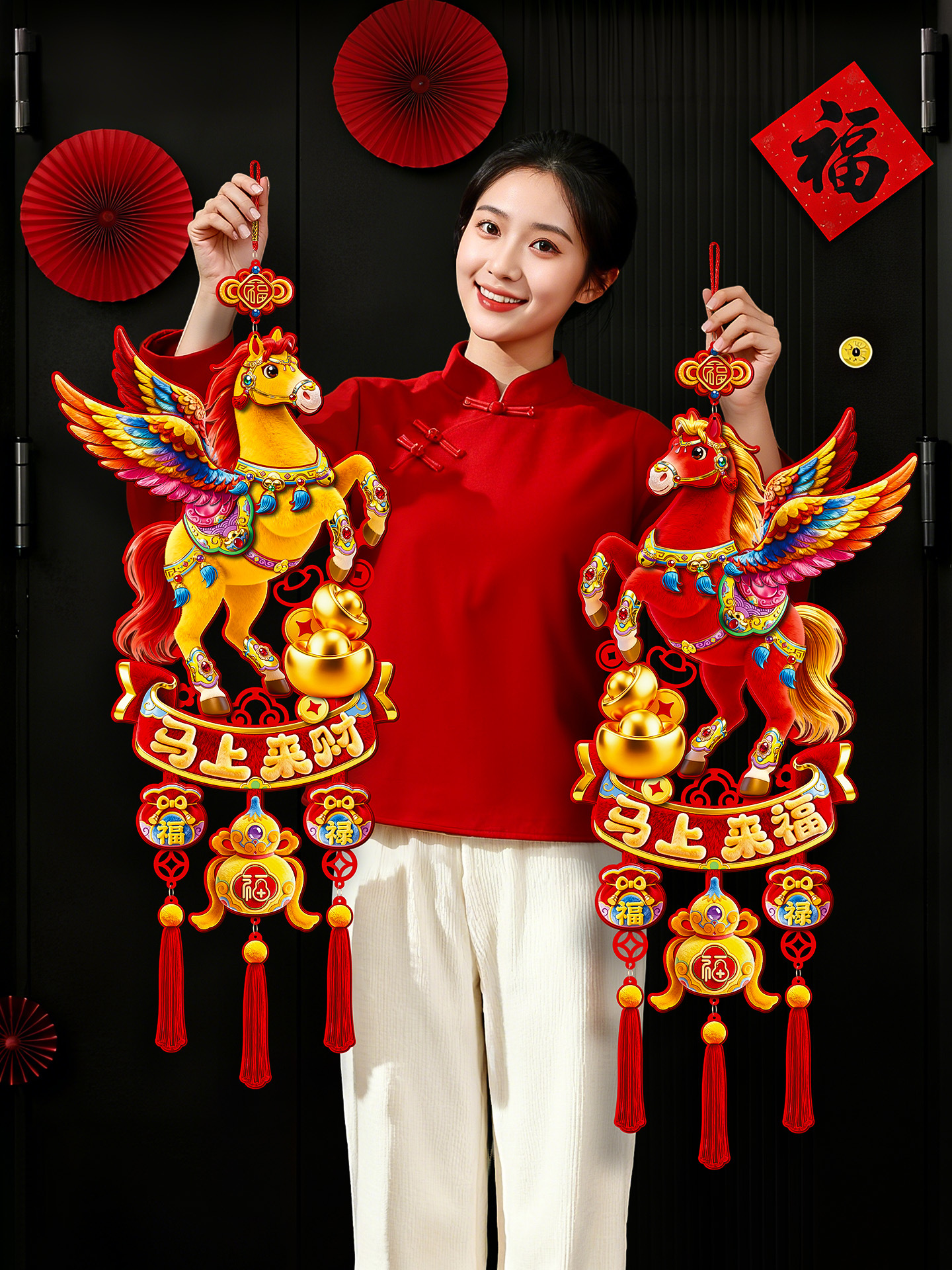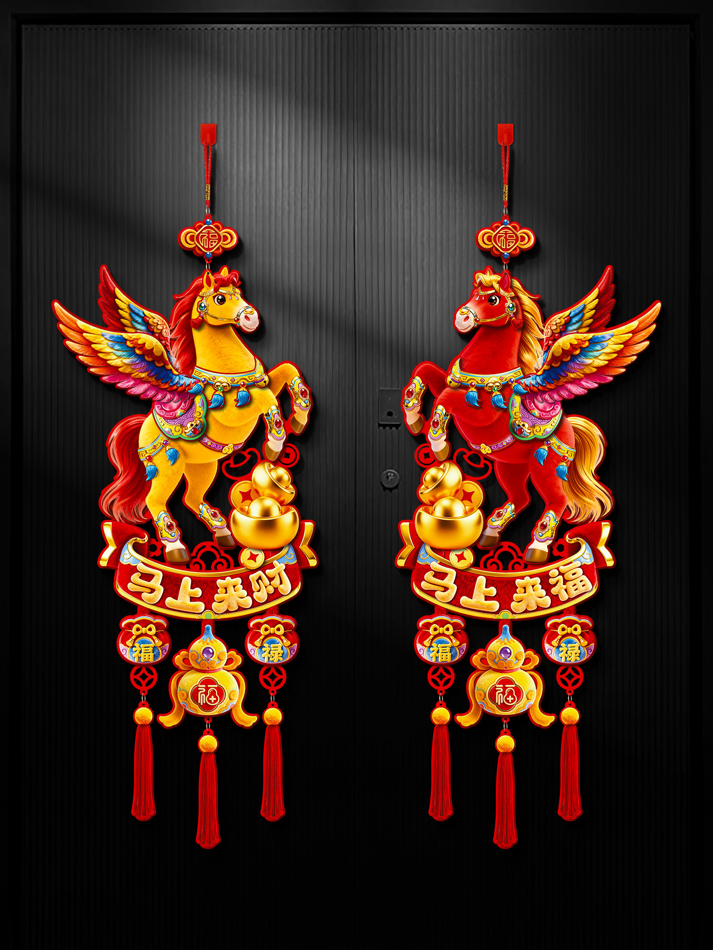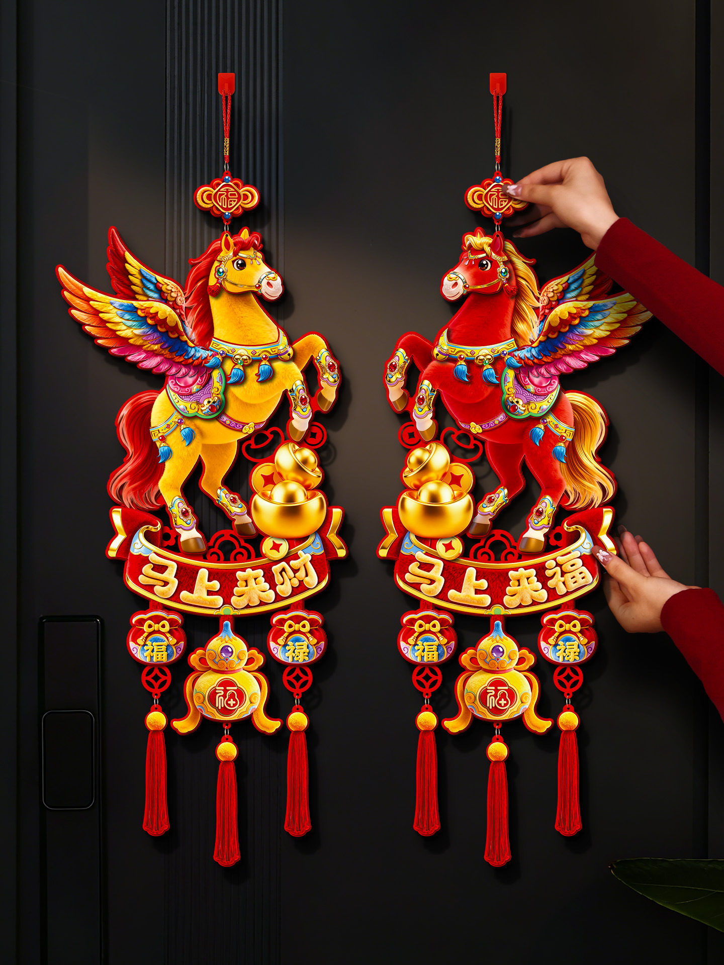 year of the horse big luck + fu come to my home three-in-one hanging (5d plush visual sense)