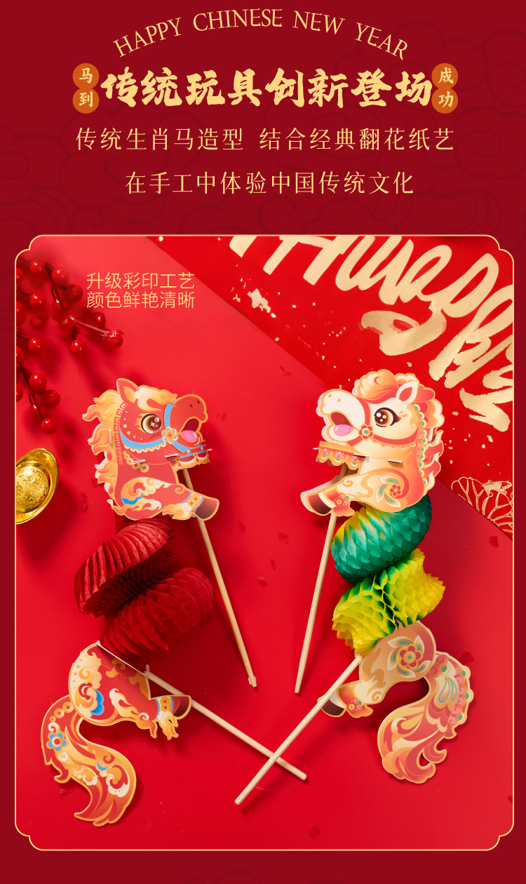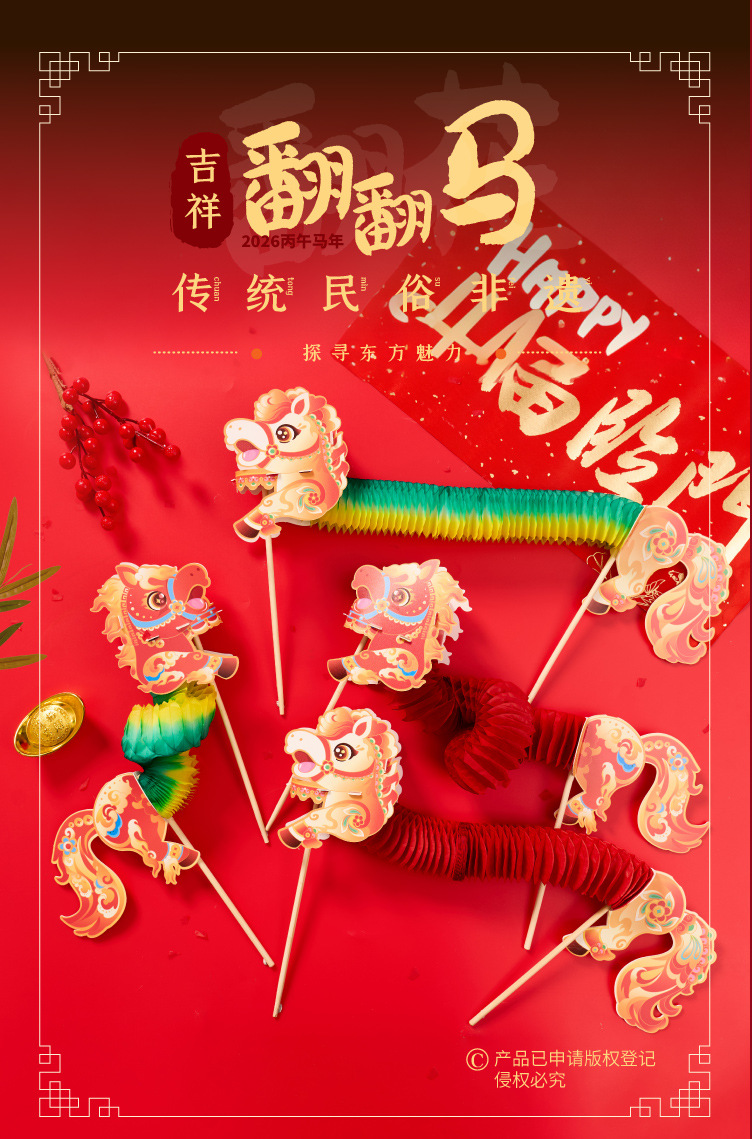 auspicious flip horse-red flower red horse