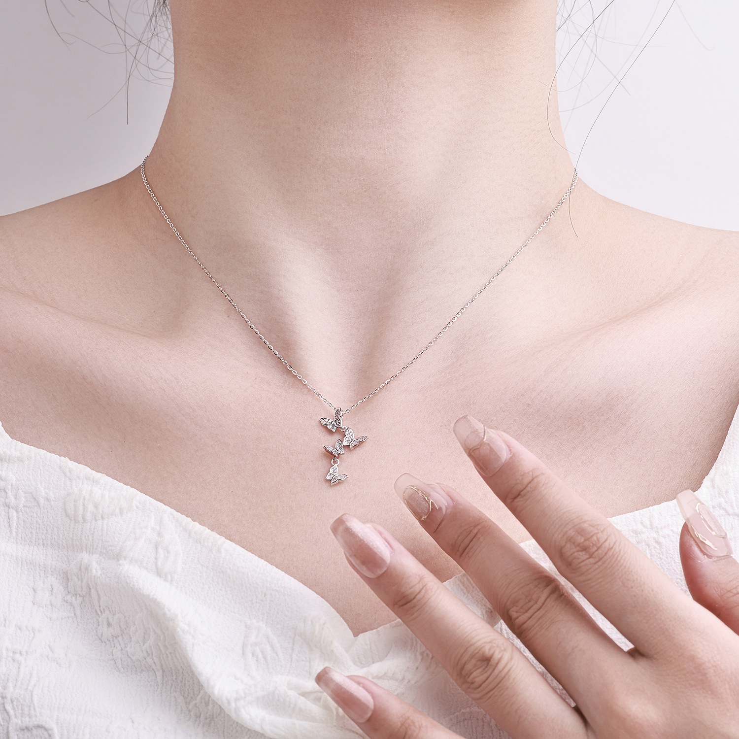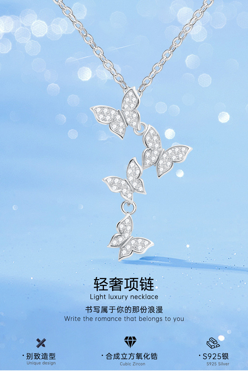 four butterfly necklace women's korean-style simple ins style light luxury minority high-grade clavicle chain temperament wild non-fading