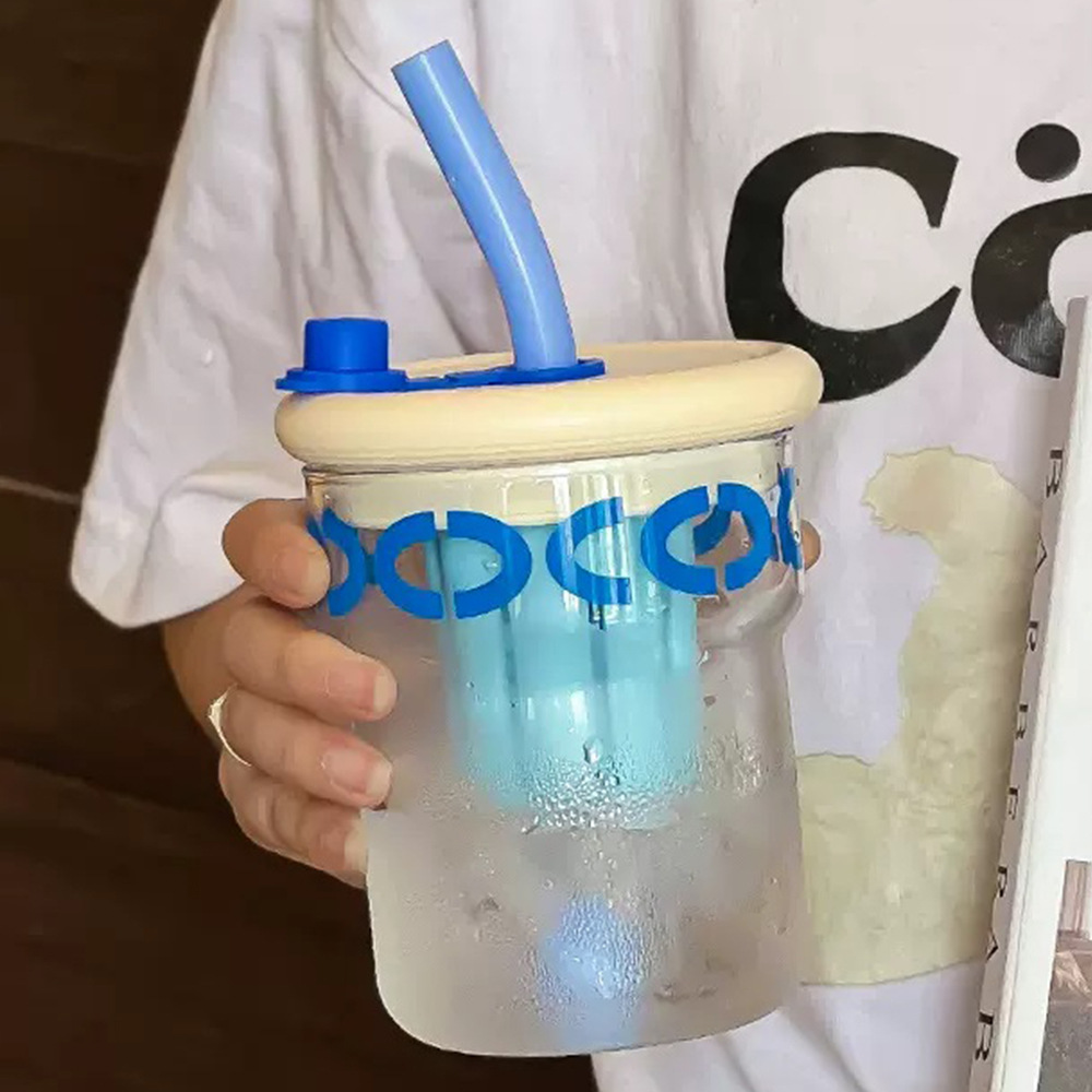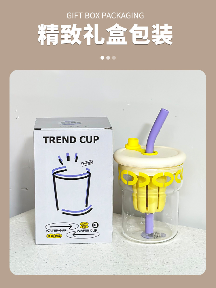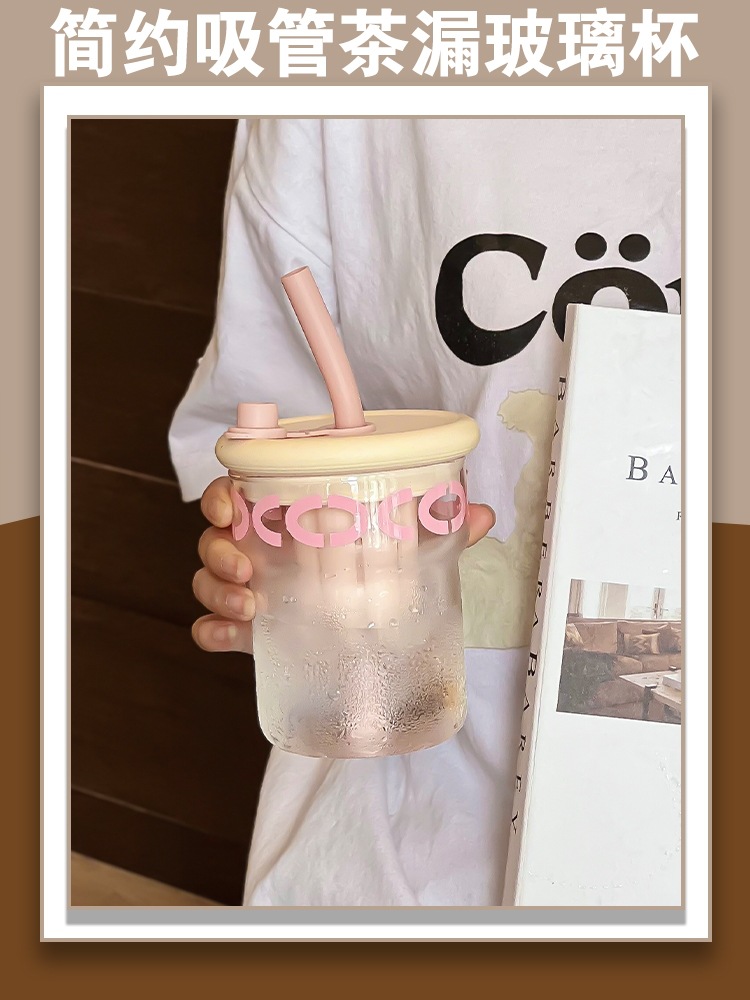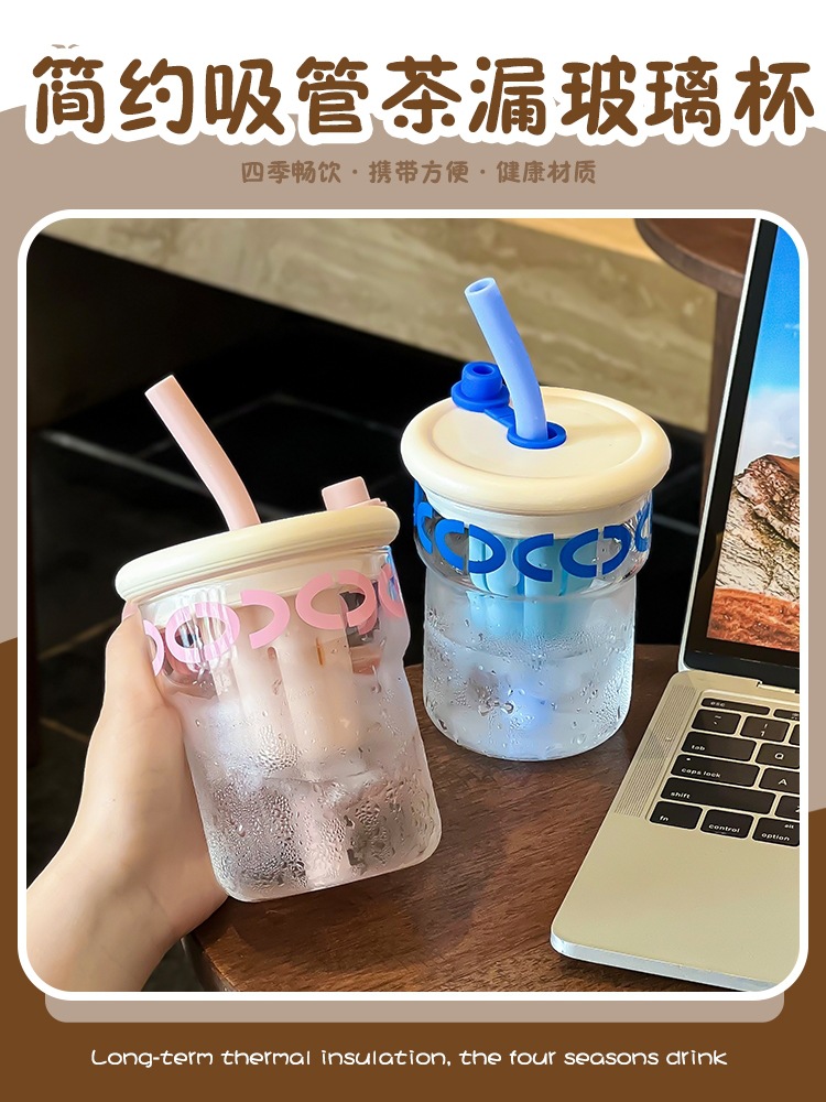 ins simple office coffee cup with strainer heat resistant glass good-looking couple tea cup with straw gift