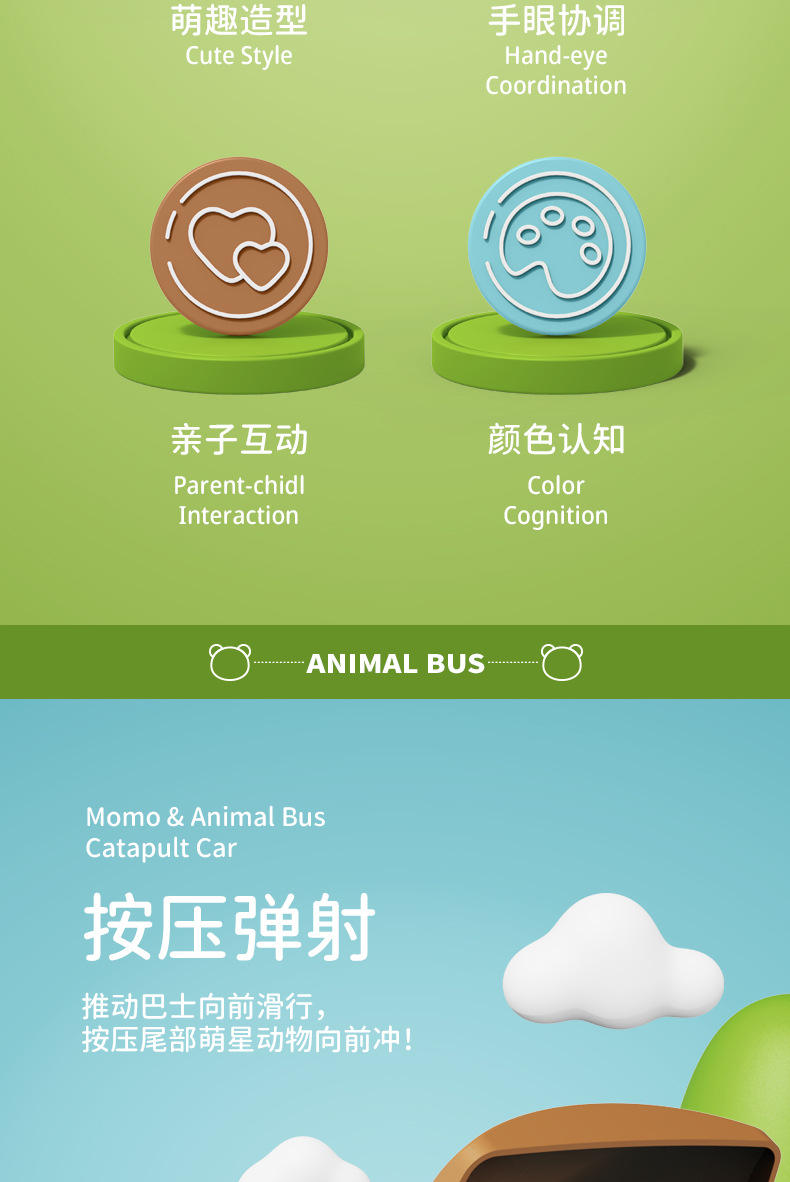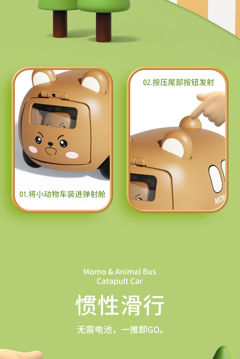 pressing boy's toy cute pet catapult bus inertial vehicle children's inertial vehicle cartoon kindergarten small gift wholesale