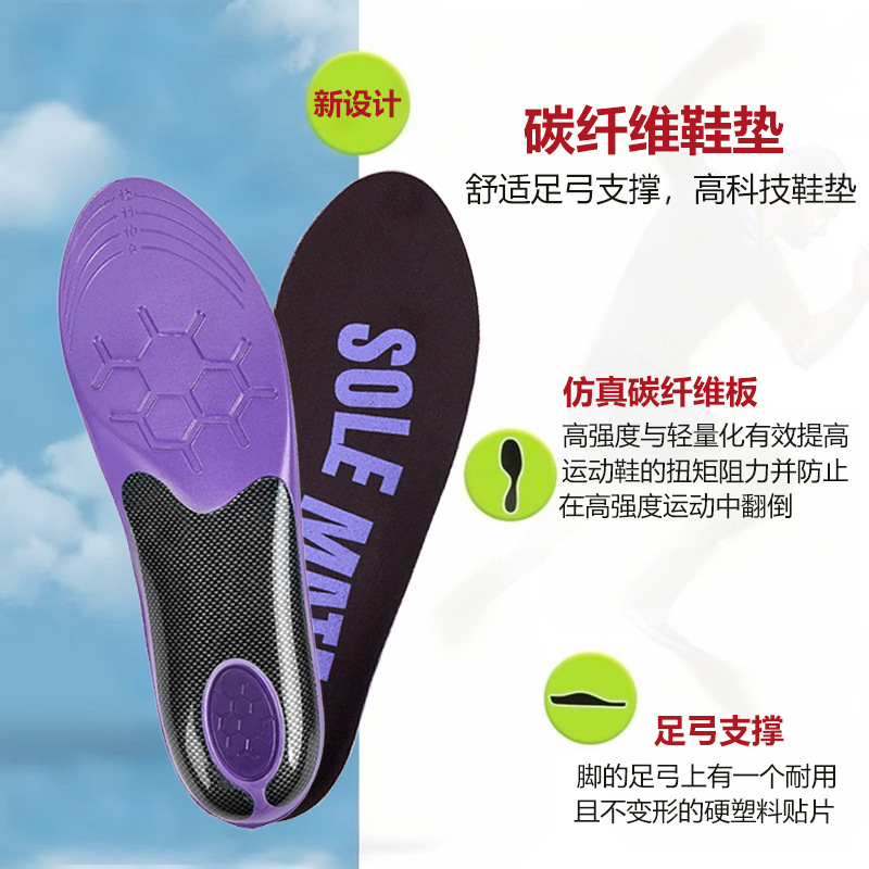 customized carbon fiber insoles pu foam basketball shoes sports anti-twist sweat absorbing and deodorant breathable arch support insole