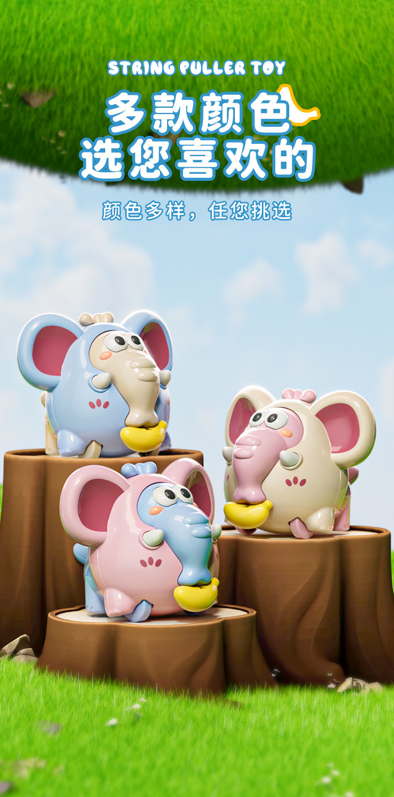 new pull line elephant cute slide baby elephant catch grip crawling early education color cognition crane machine toys